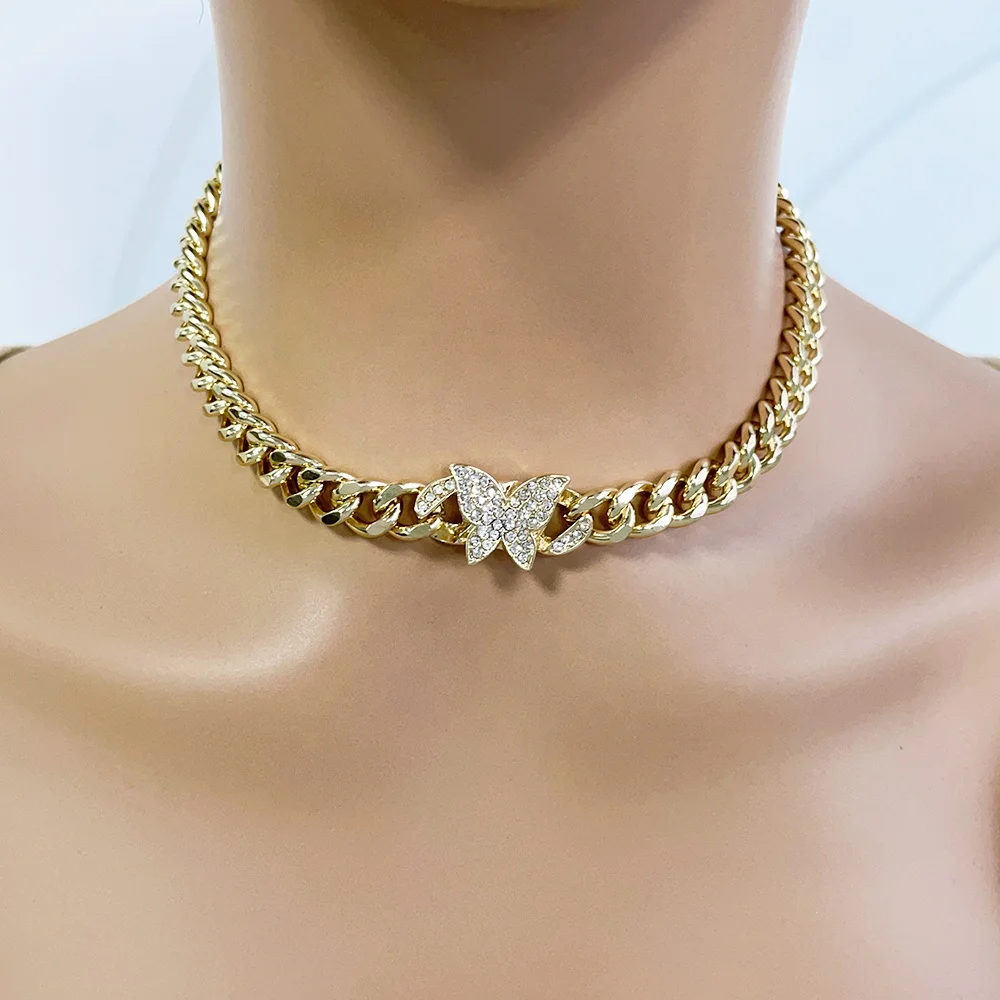 2026 Trendi Ékszer Pillangó Teljes Gyémántos Kuba Lánc Medál Nyaklánc - Divatos Báj Nőknek - Lánc Nyaklánc