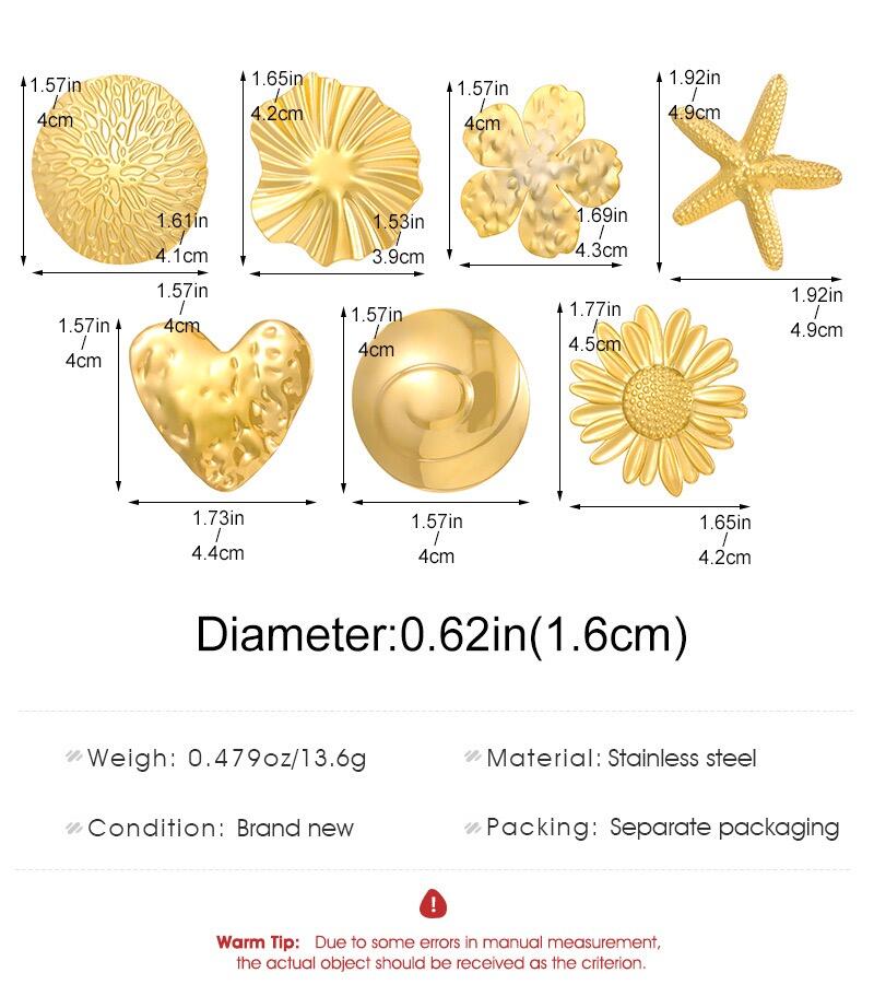 A HQCMLA Irregular Geometric Csillagalakú Gyűrű egy bájos, visszatekintő, arany színű rozsdamentes acélból készült ékszer, 18K bevonattal. Kiemelkedő csillagalakú és napraforgó motívuma, állítható nyitott gyűrűstílusa és tartós felülete ideálissá teszi mindennapi viselésre vagy ajándékozásra. Ha olyan gyűrűt keres, amely feltűnik és eleganciát kölcsönöz megjelenéséhez, ez a darab tökéletes választás.