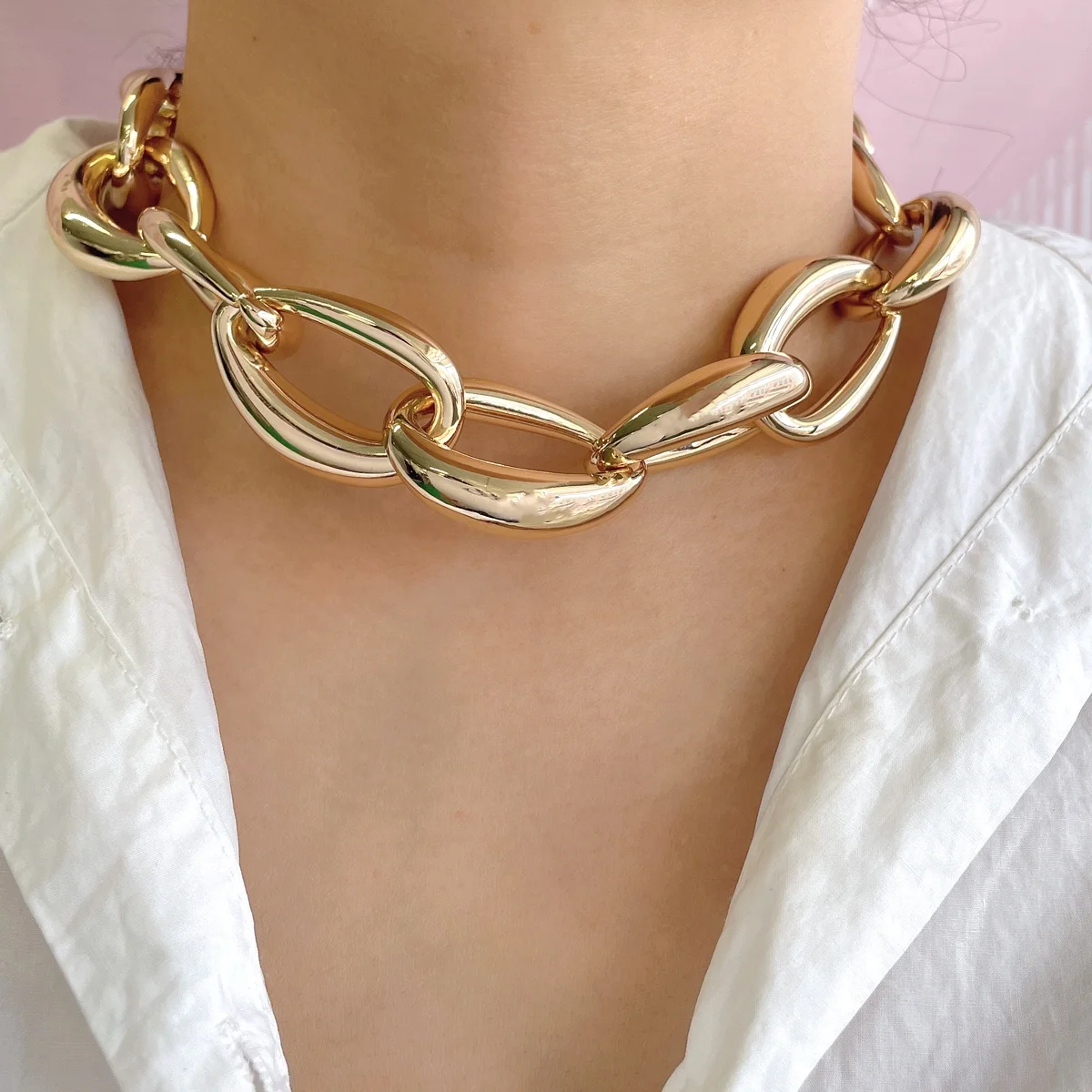 product 18k gold plated geometry choker necklace for women new fashion classic link chain design for anniversaries-27