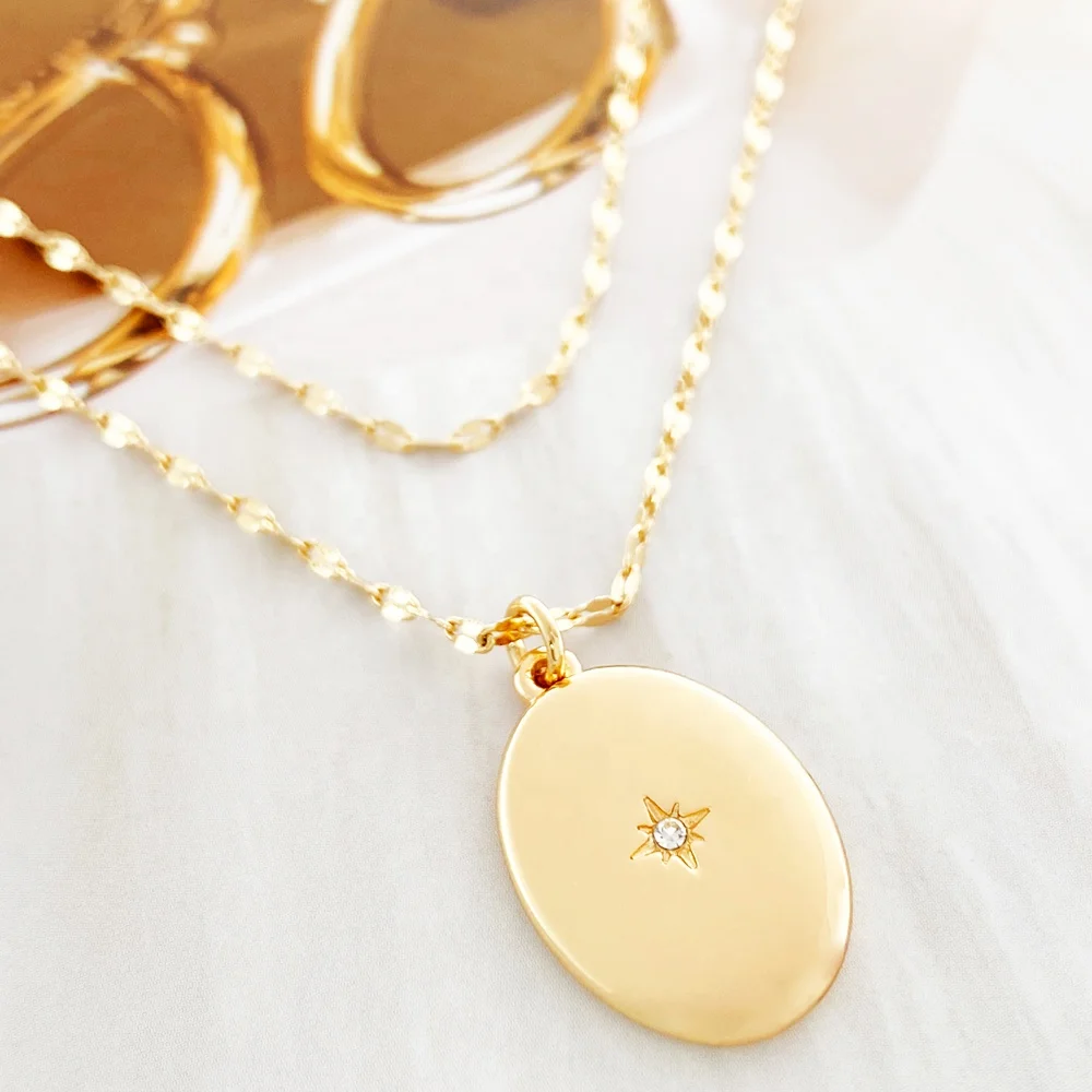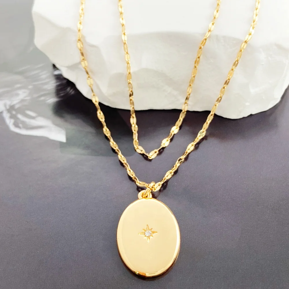 product 18k gold plated link chain double chain fashion star pendant necklace for women and girls classic style made from zinc alloy-18