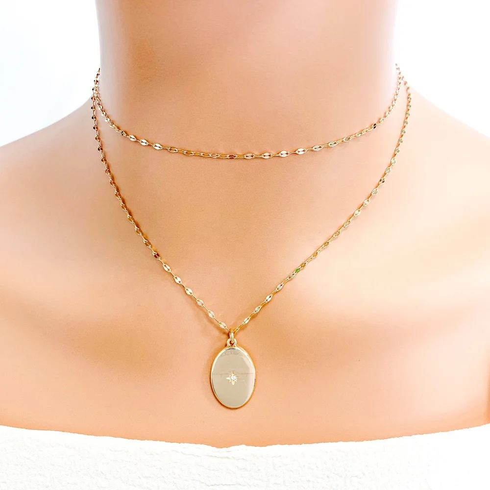 product 18k gold plated link chain double chain fashion star pendant necklace for women and girls classic style made from zinc alloy-14