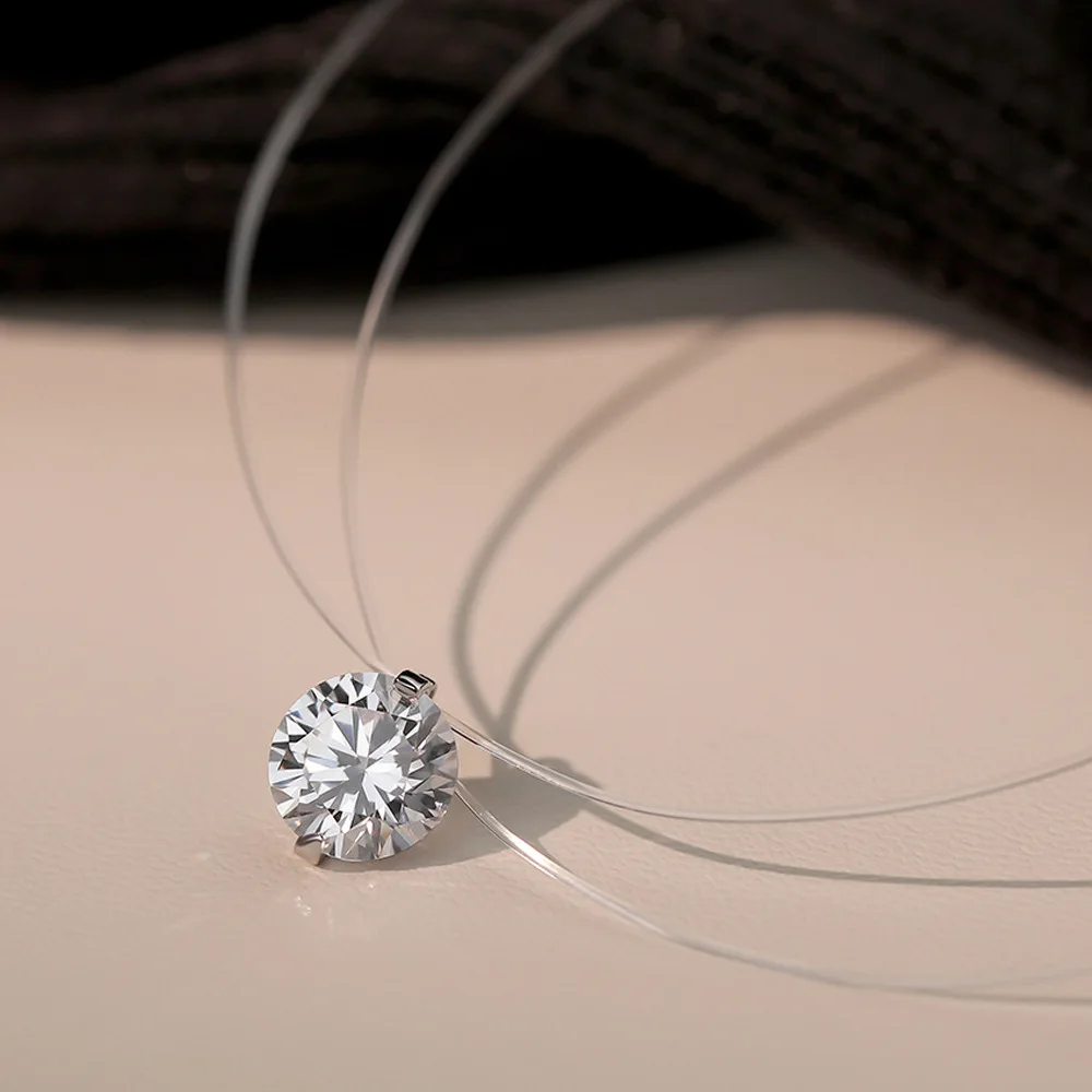 2025 925 Silver Mermaid's Tears Pendant Necklace for Women Flash Diamond Transparent Fishing Line Clavicle Necklace