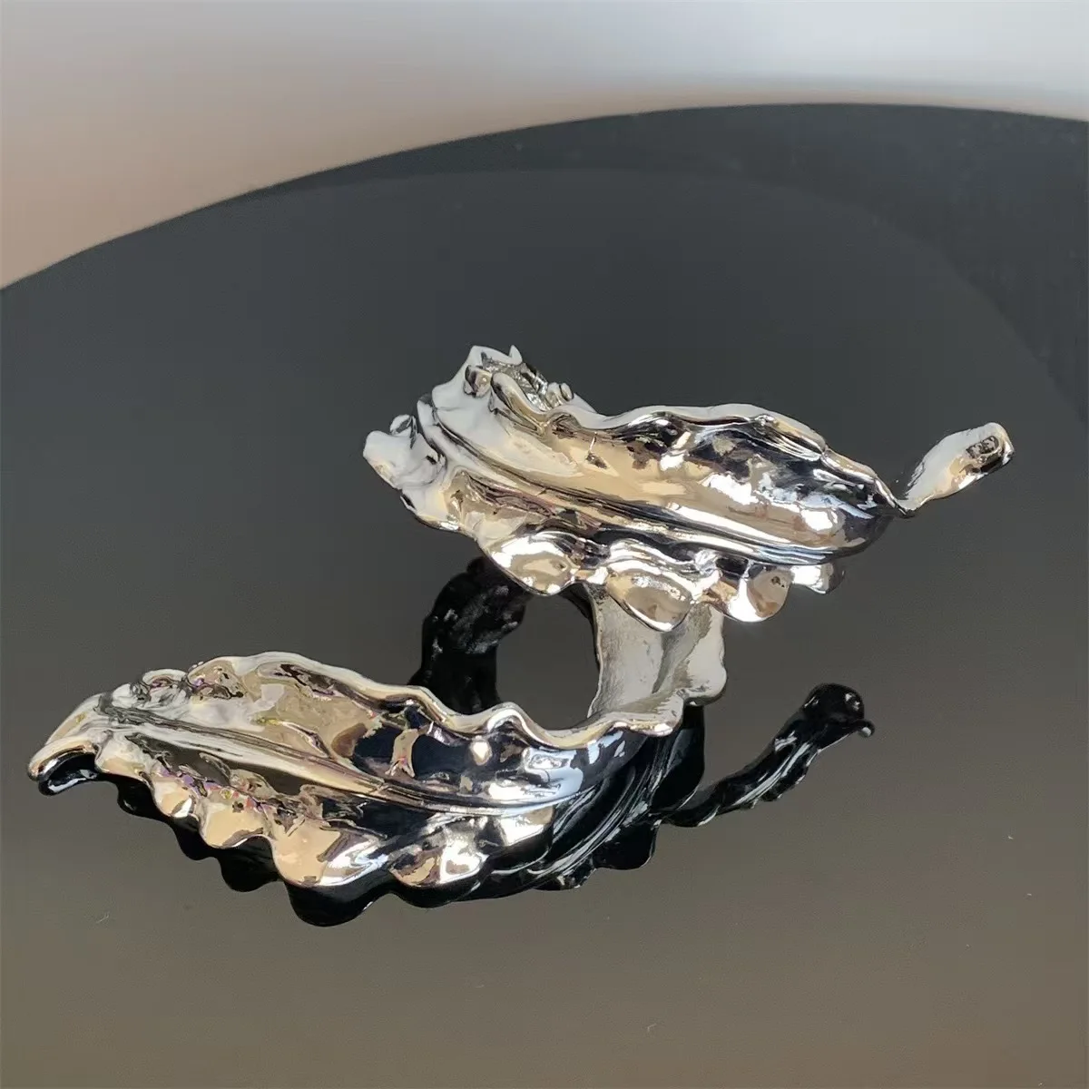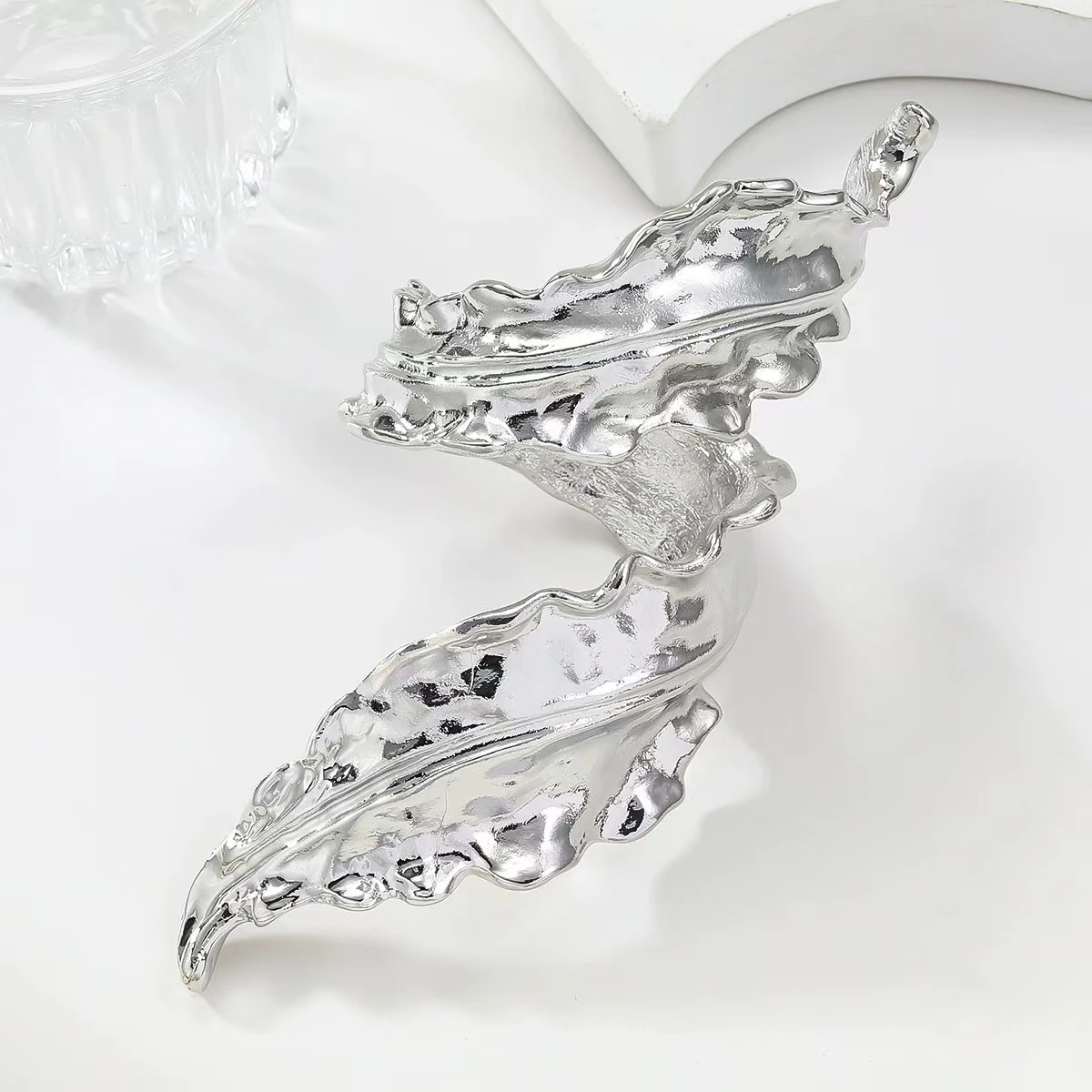 Fashion 2024 European and American liquid simple style liquid wrapped leaf elegant bracelet exaggerated metal leaf wrist ring