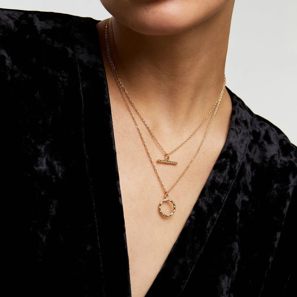 2026 Cross-border Trendy Gold Plated Alloy Necklace Stacked Niche Clavicle Chain High-grade Geometric Accessories