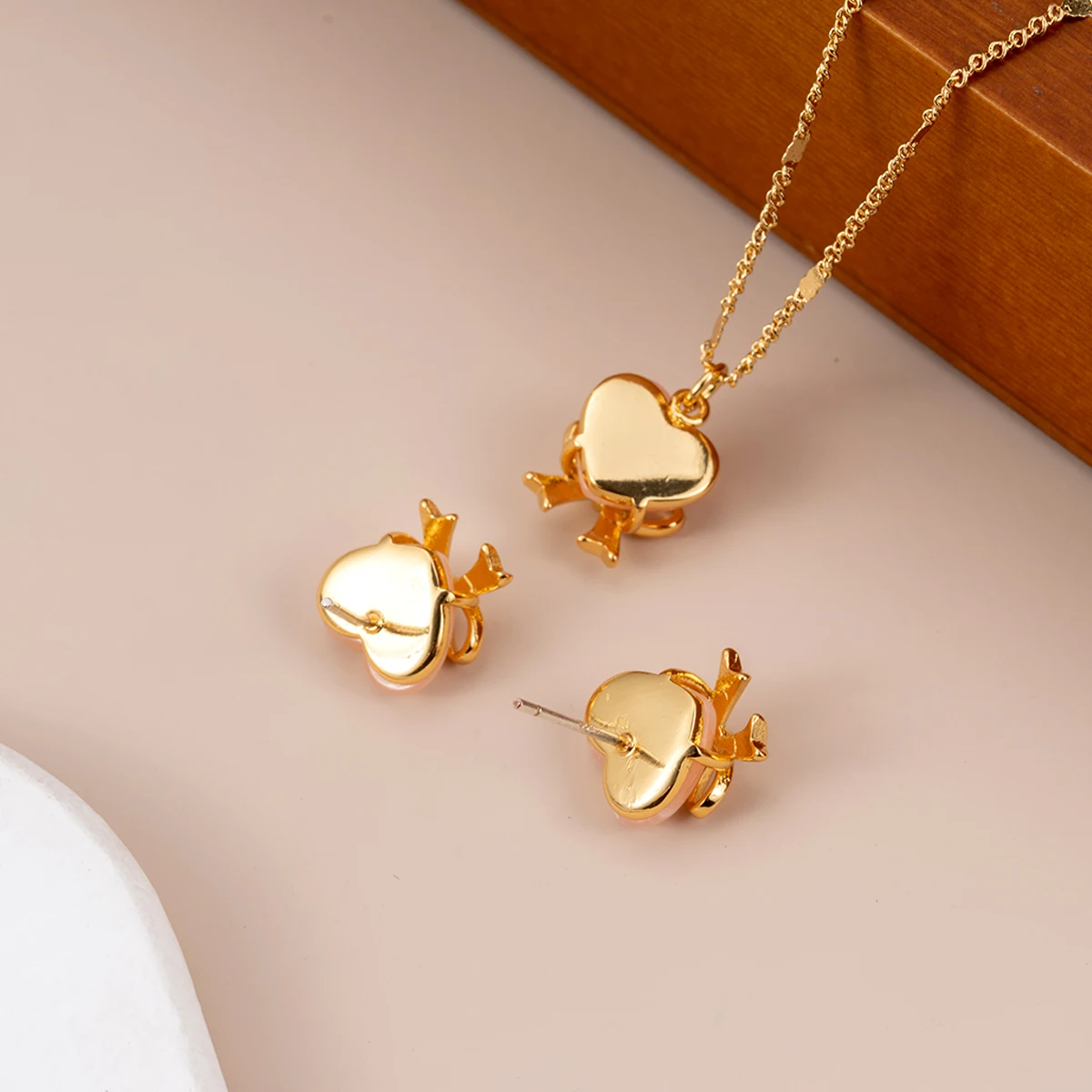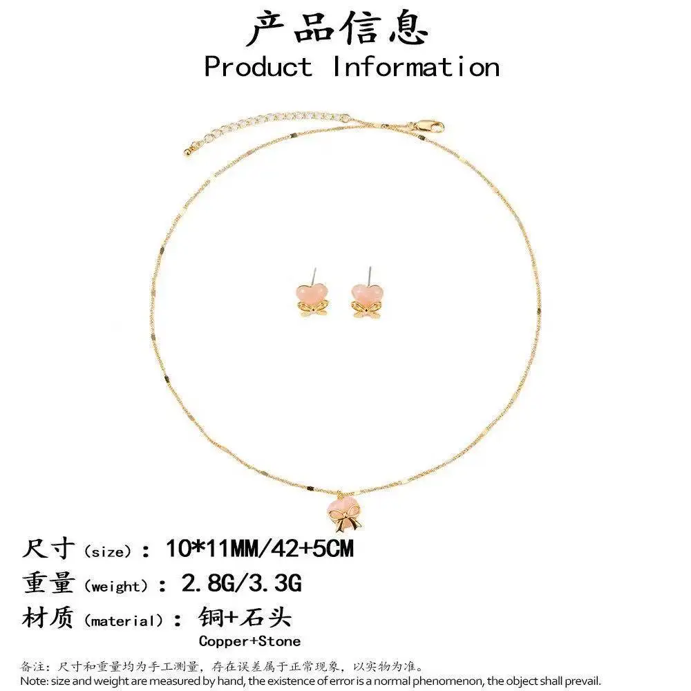 2026 Korean Jewelry Heart-shaped Bow Tie Earrings and Necklace - Electroplated Charm Women's Necklace Set