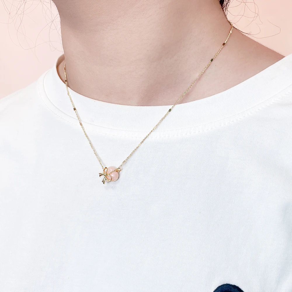 Fashion Jewelry Wholesale Classic Zinc Alloy Link Chain Custom Colorful Crystal Pink Pendant Gold Plated Necklace for Women