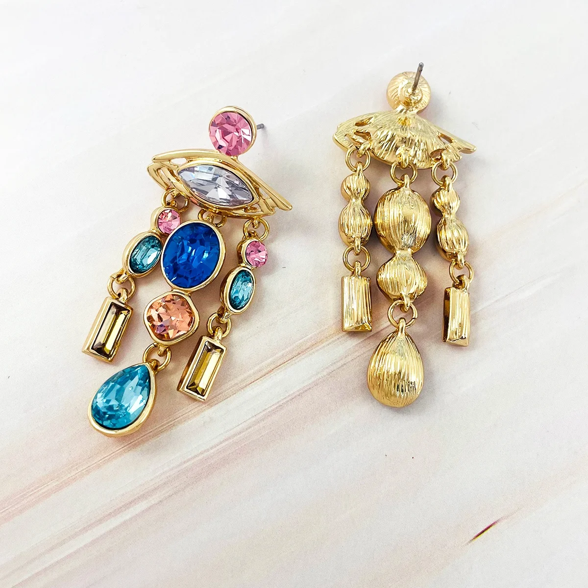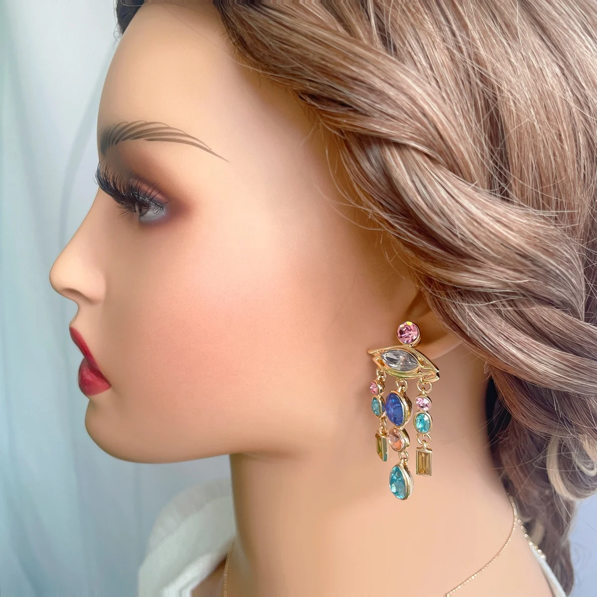 2026 New Trend Gold Plated Drop Long Tassel Colored Diamond Classic Luxury Design Fashion Earring Jewelry Women Gift