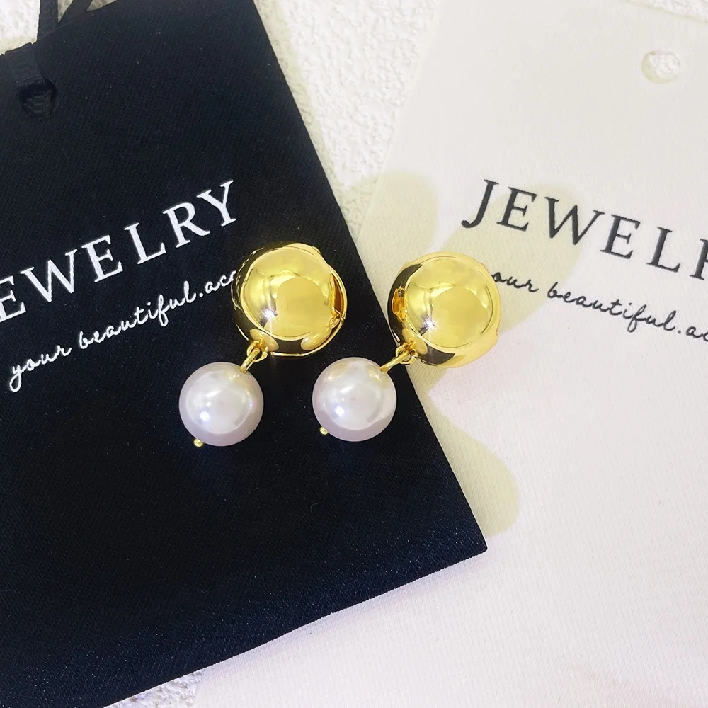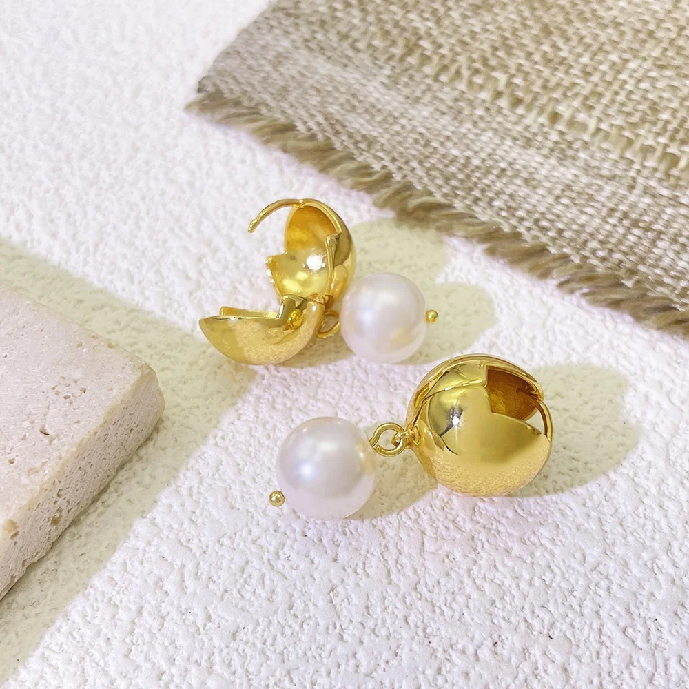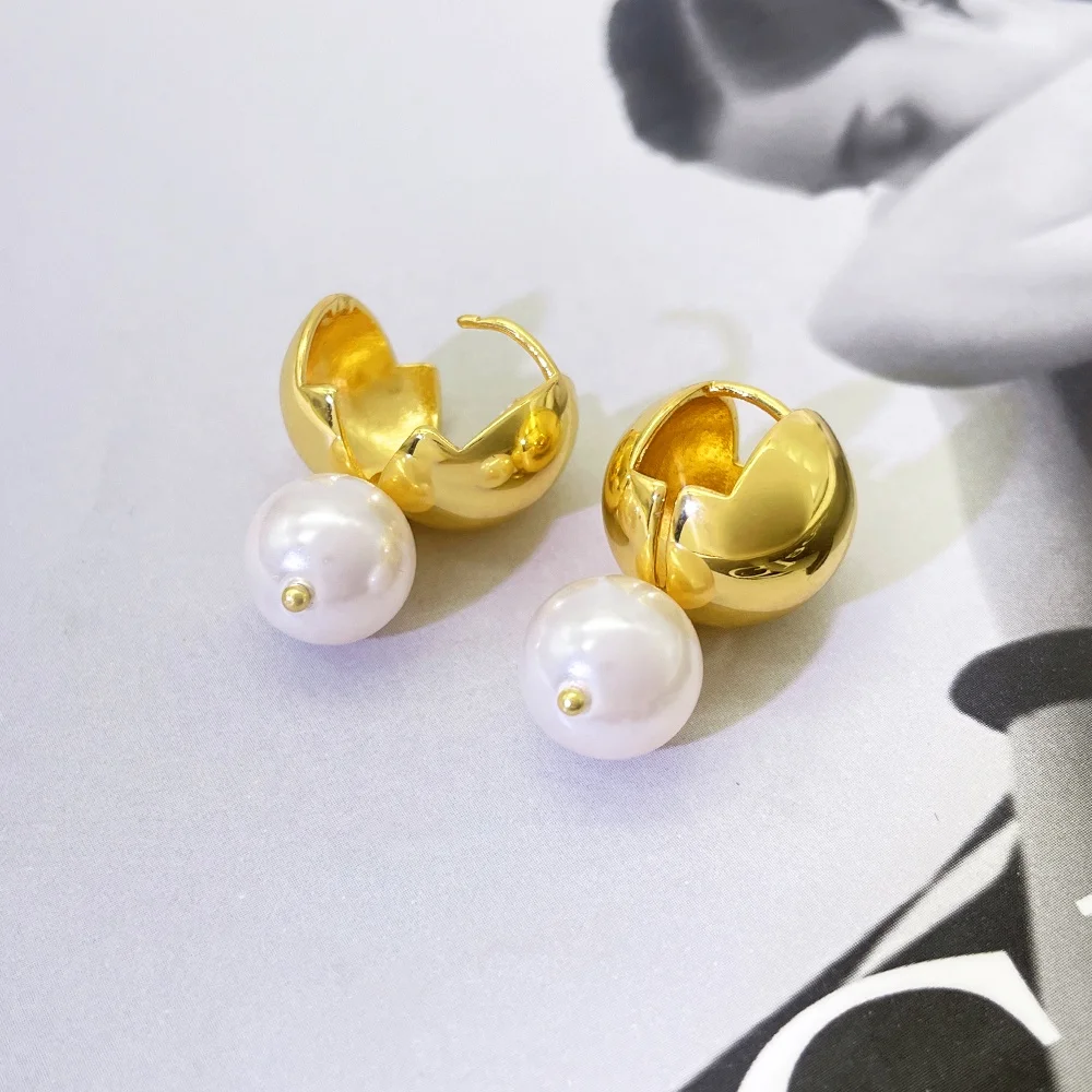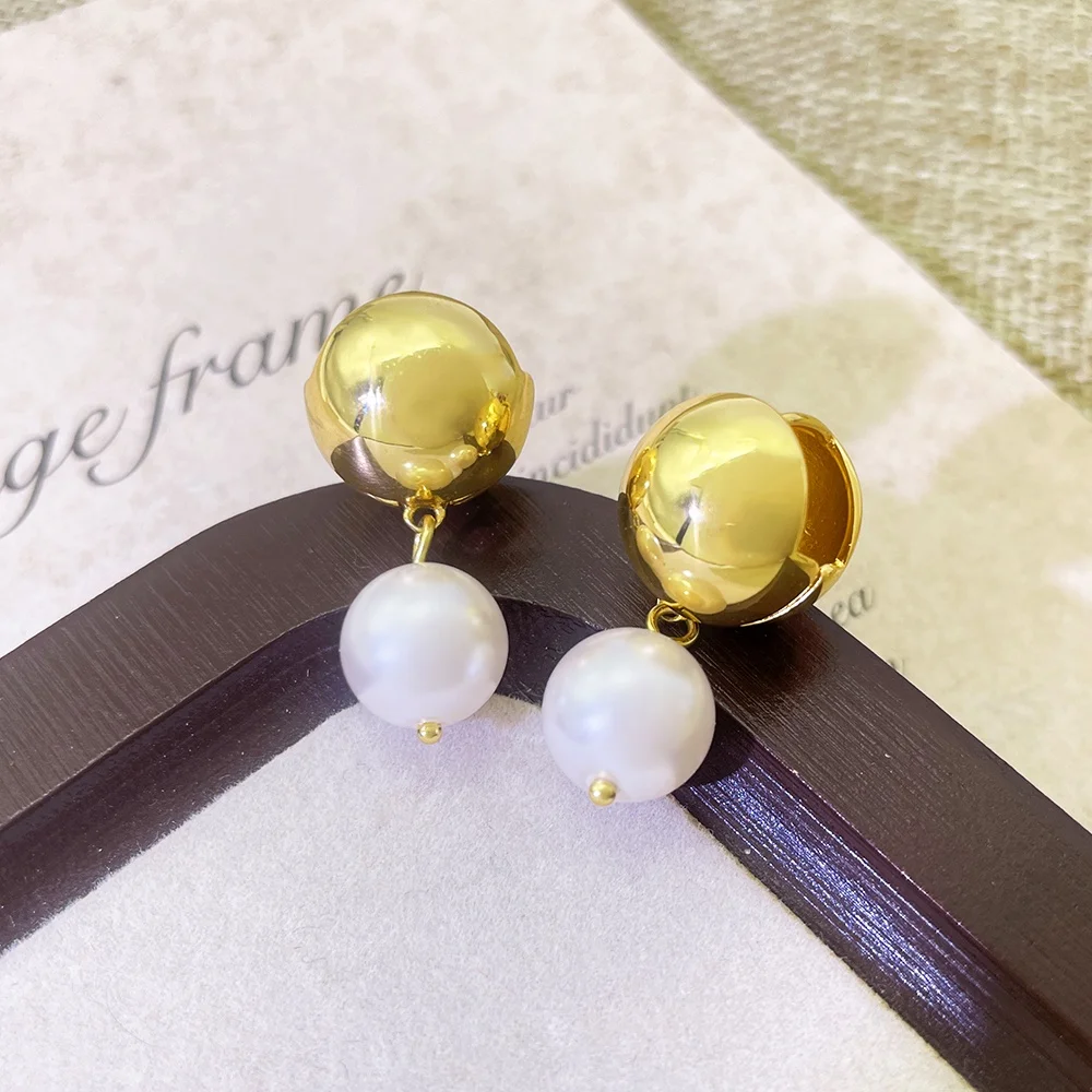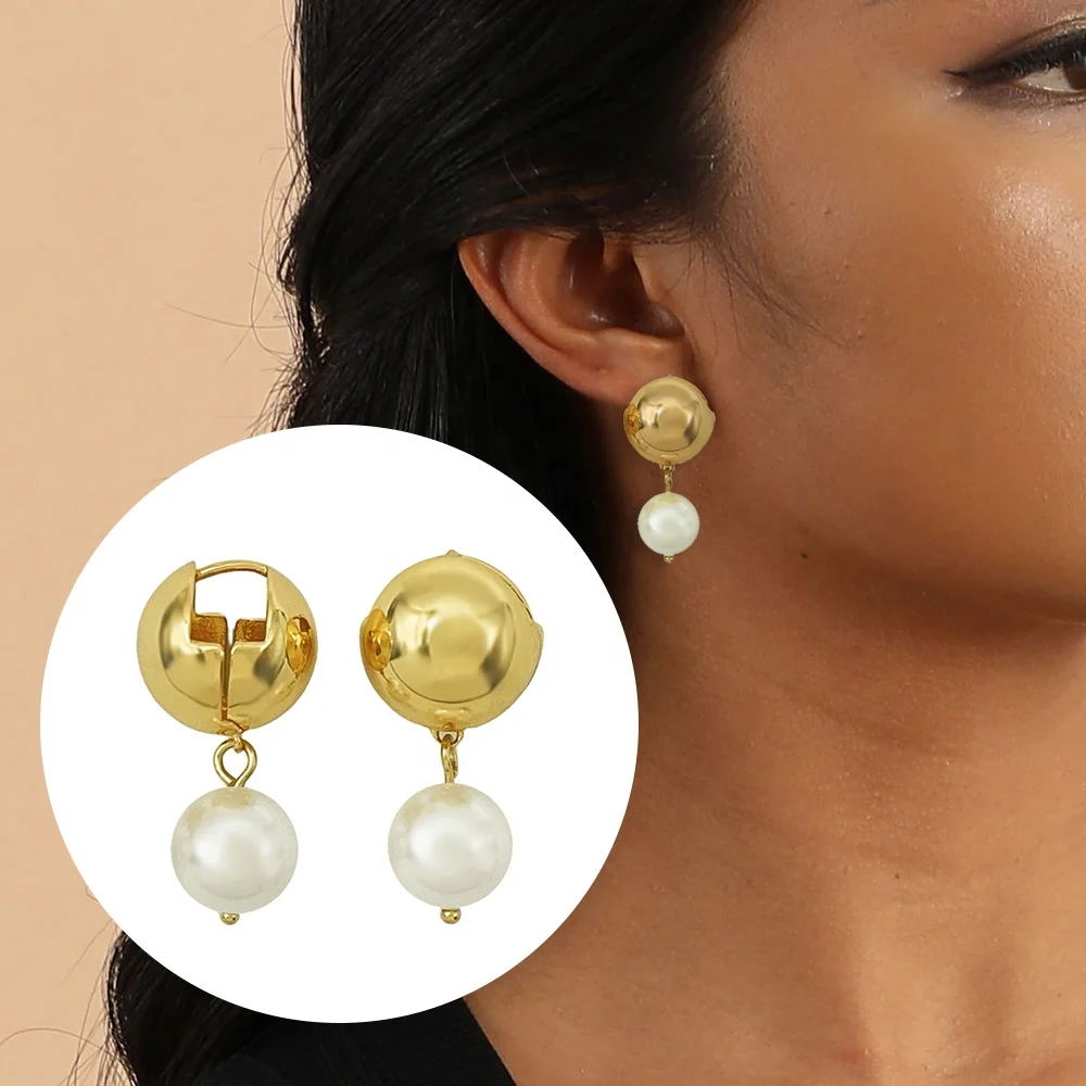 2026 Simple Hot Selling Brass Ball Post and Pearl Pendant 18K Gold Plated Fashion Earring Jewelry for Women and Girl