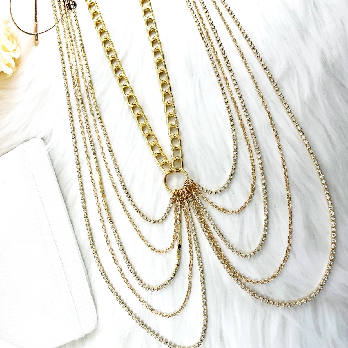 2026 Trendy Wholesale Gold Plated Crystal Diamond Sexy Waist Chain Fashion Pendent Korean Jewelry Luxury Designer for Women