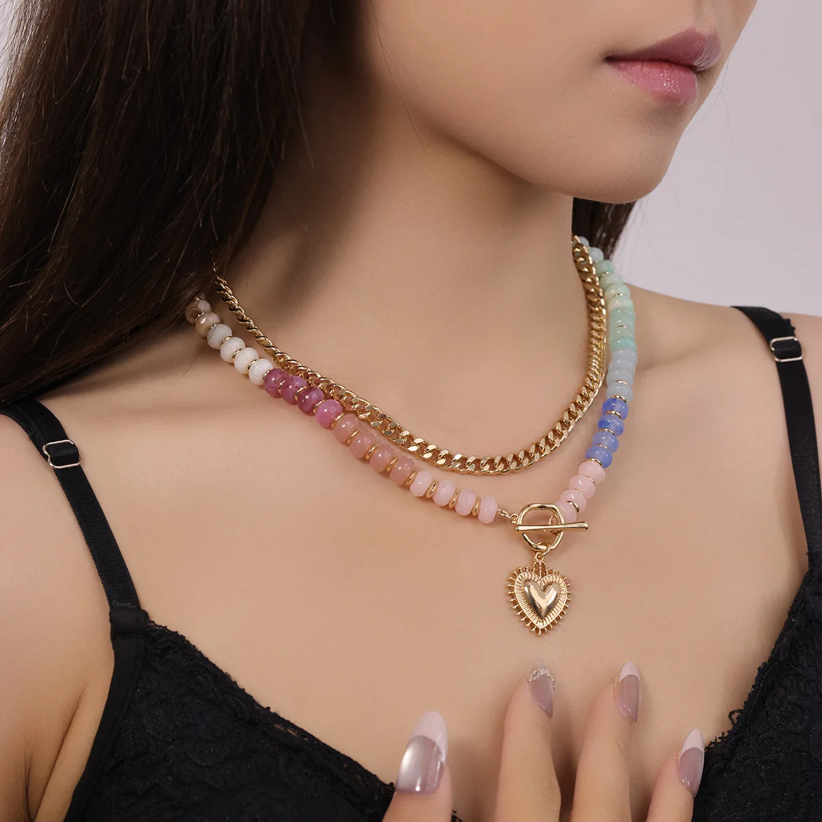 2026 Women's Ethnic Style Beaded Clavicle Chain Natural Stones July Birthstone Gold Plated Hot-Selling Fashion Pendant Necklaces