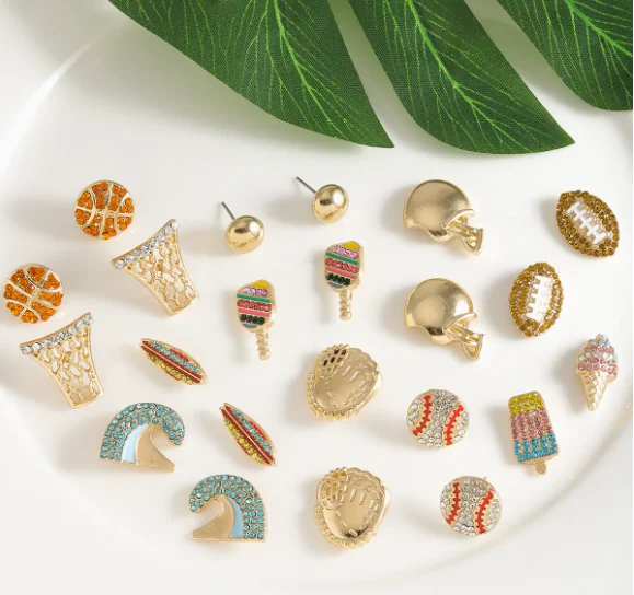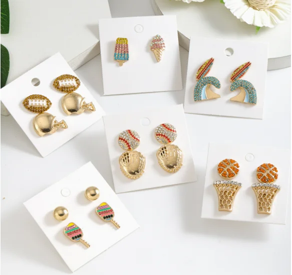 2026FunColorfulIce Cream Stud Earrings Game Day Simple Stylish Sport Themed Set-for Football Basketball Baseball Great As a Gift