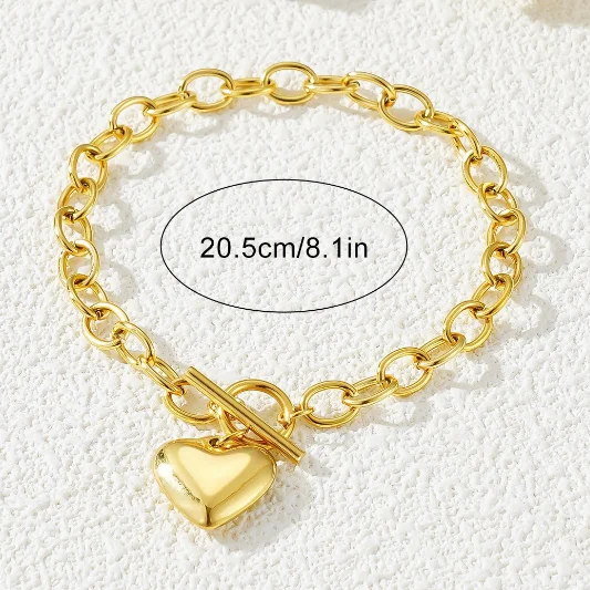 Classic 2026 Stainless Steel Bracelet with 18K Gold Plating Fashion Jewelry for Women Couples Geometric Heart Design for Parties