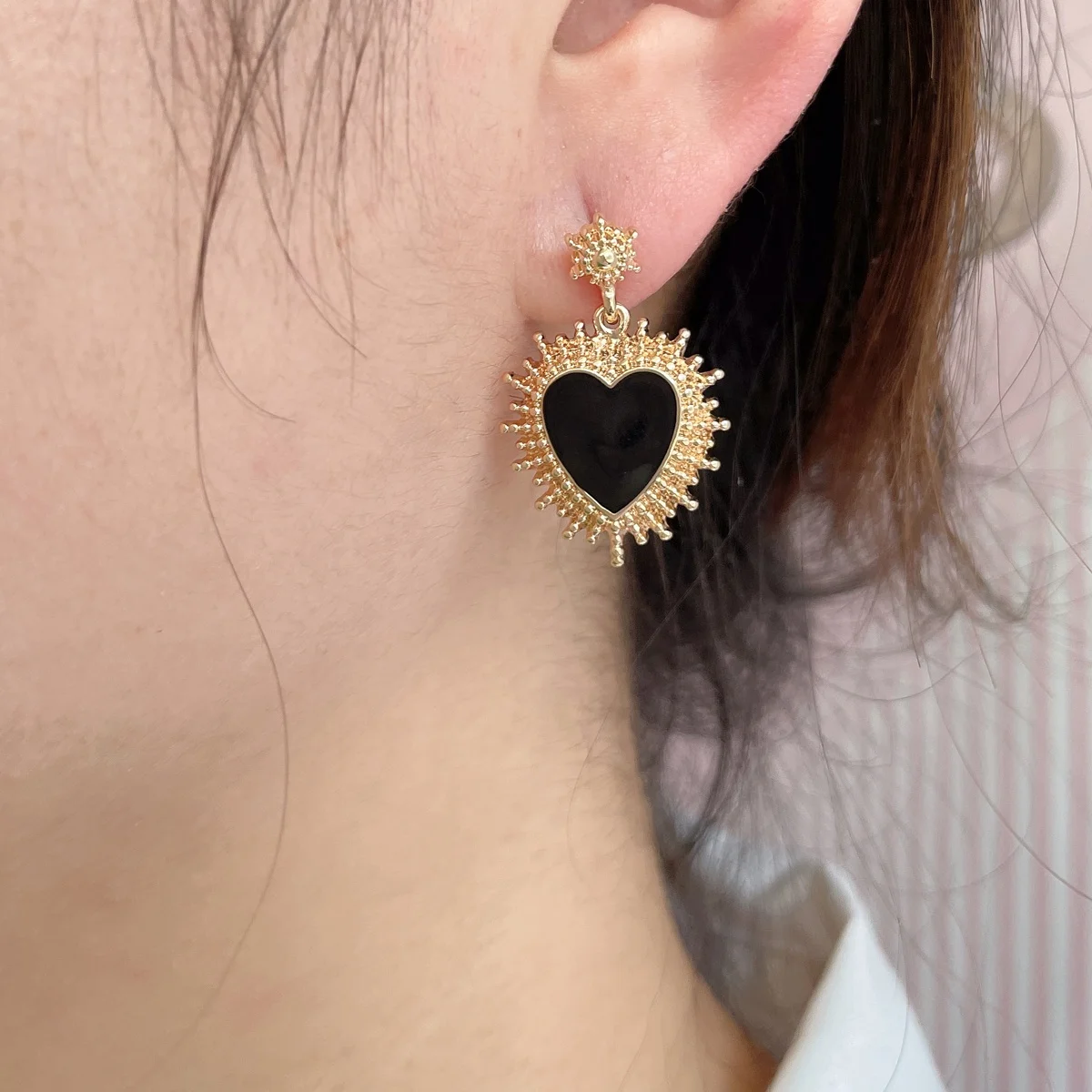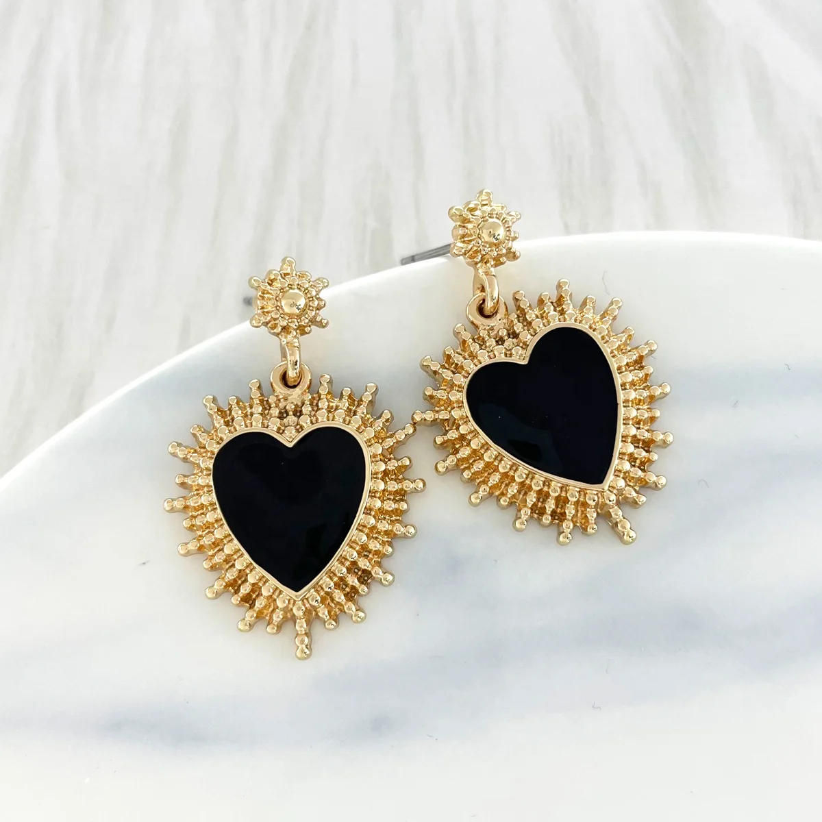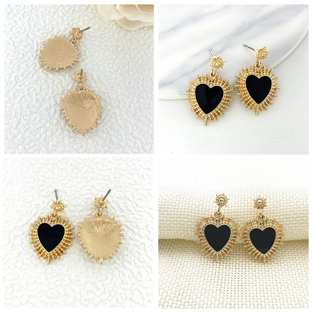 Classic Korean Design Stud Earrings Hot Sales Gold Plated Zinc Alloy Sun Enamel Heart Fashion Jewelry for Women
