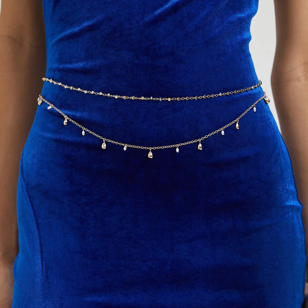 Cross-border Hot Selling New European American High-end Fashionable Multi-pendant Double-layer Stacked Metal Waist Chain Party