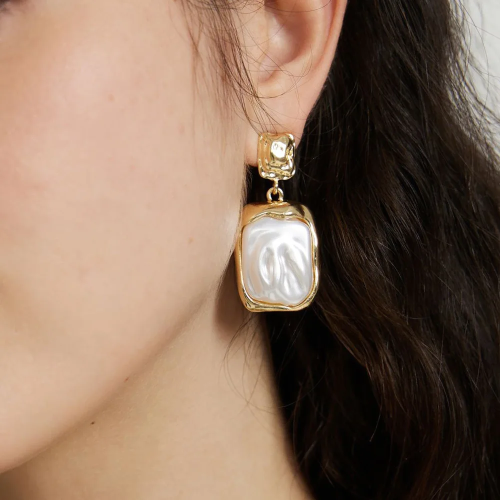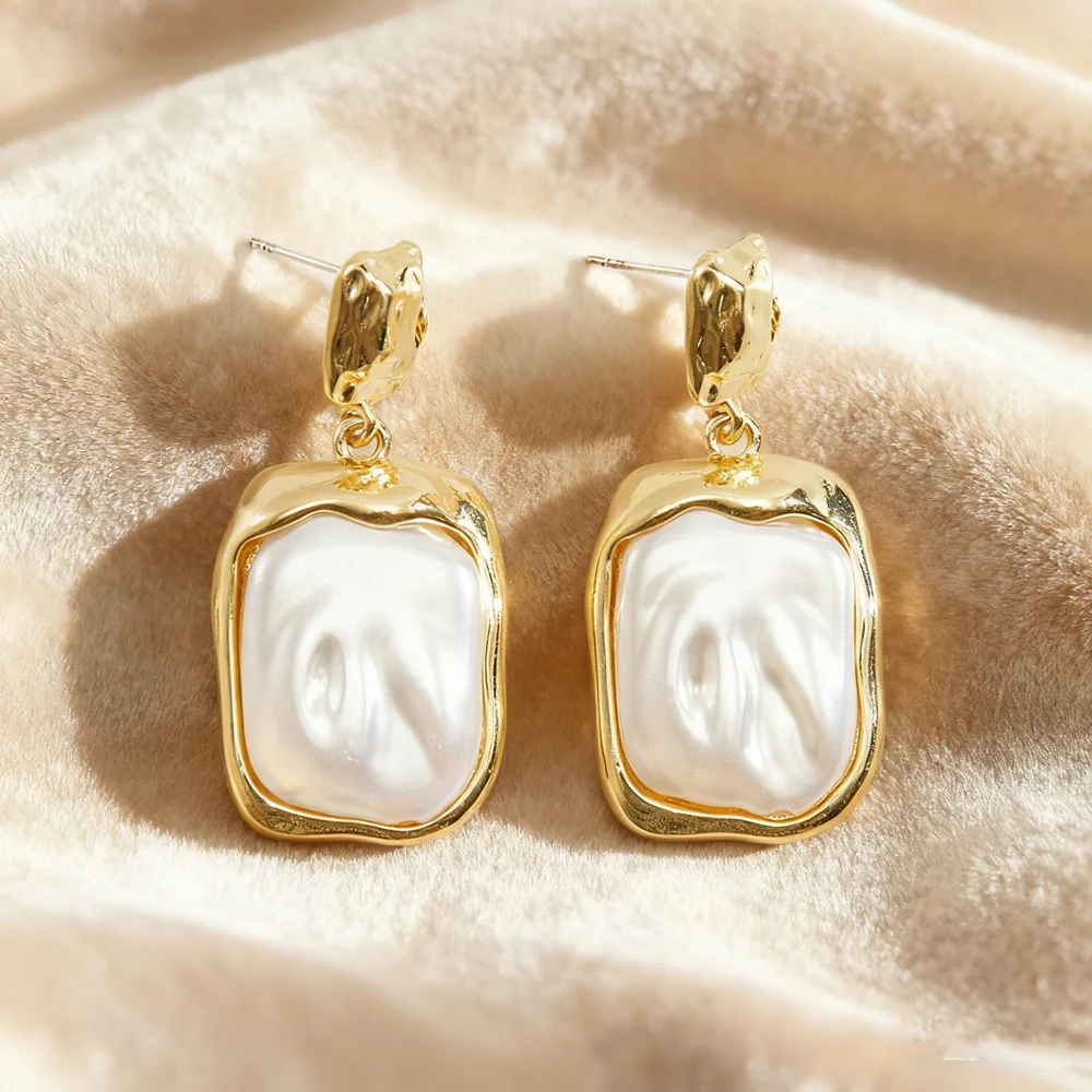 Cross-border Hot Selling Retro Light Luxury Pearl Earrings Elegant Baroque Geometric Drop Earrings Women's Jewelry