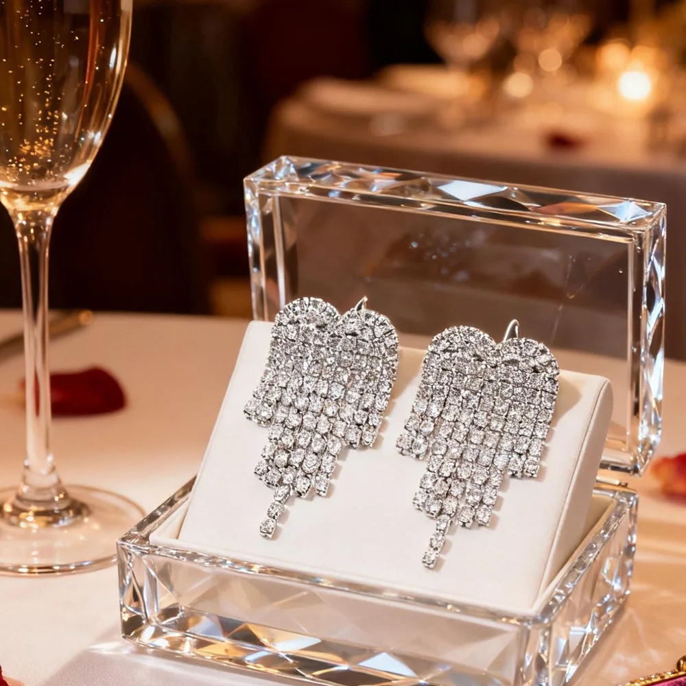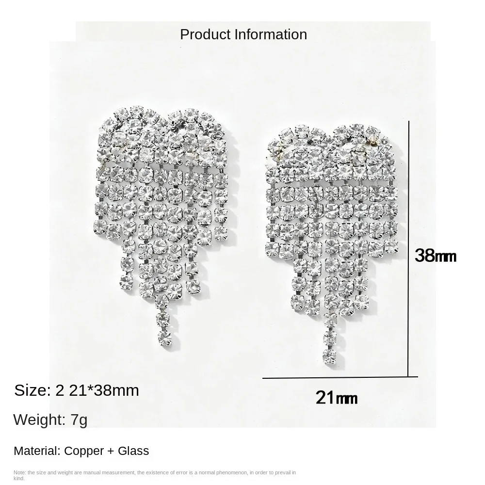 Cross-border Light Luxury Crystal Rhinestone Love Tassel Gold Plated Alloy Heart Shape Drop Earrings Women's Trendy Fashion