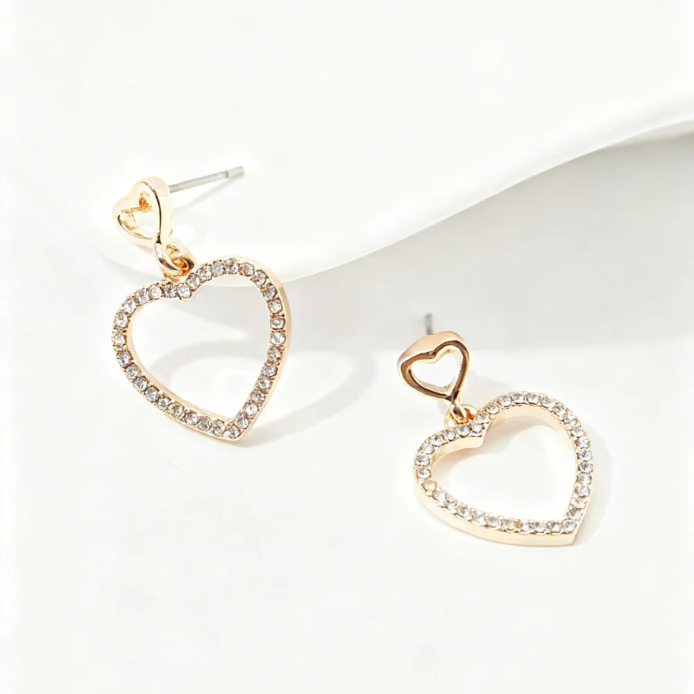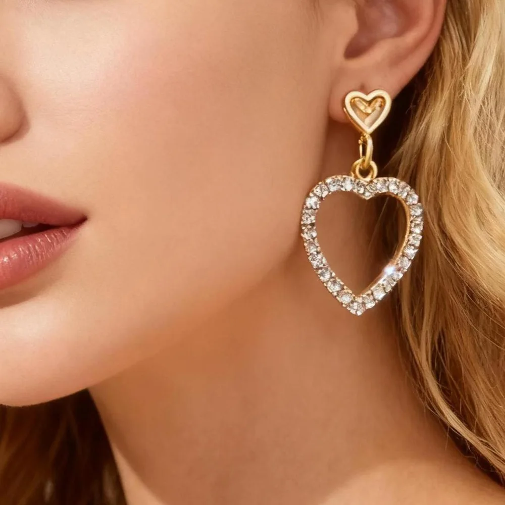 Cross-Border Personalized Creative Pendant Heart Fashion Gold Plated Alloy Inlaid Zircon Hollow Women's Earrings