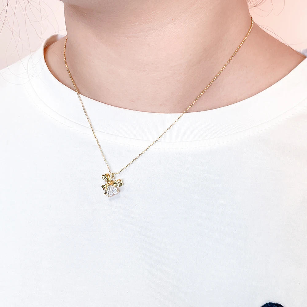 Custom Gold-Plated Diamond Heart Bow Earrings Necklace Set New Fashion Classic Style Jewelry for Women Made of Brass Link Chain