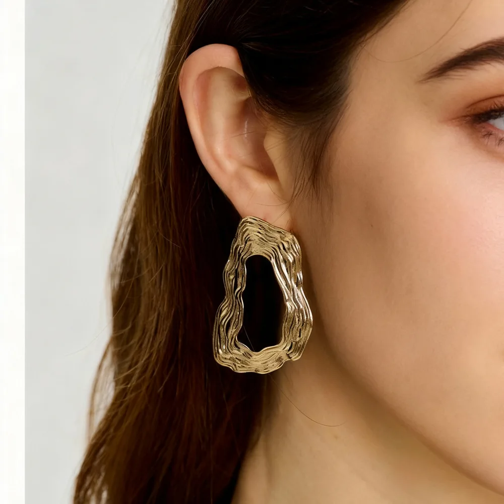 European American Gold Plated Alloy Geometric Drop Earrings for Women Trending Jewelry HQCMLA Brand Wholesale