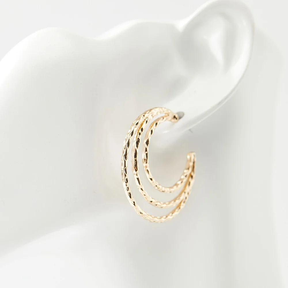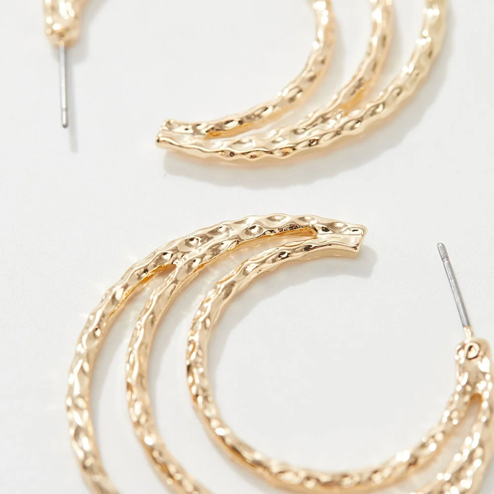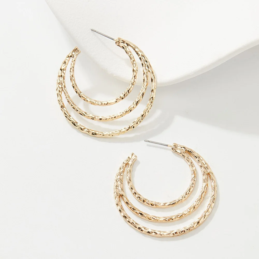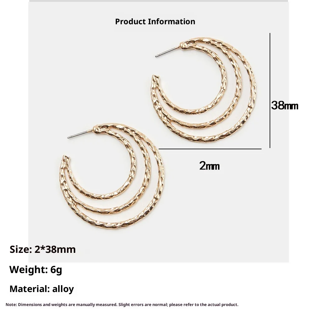 European American Retro Alloy Geometric Hollow Stud Earrings Women's Niche Design Temperament Exaggerated Light Luxury Gold