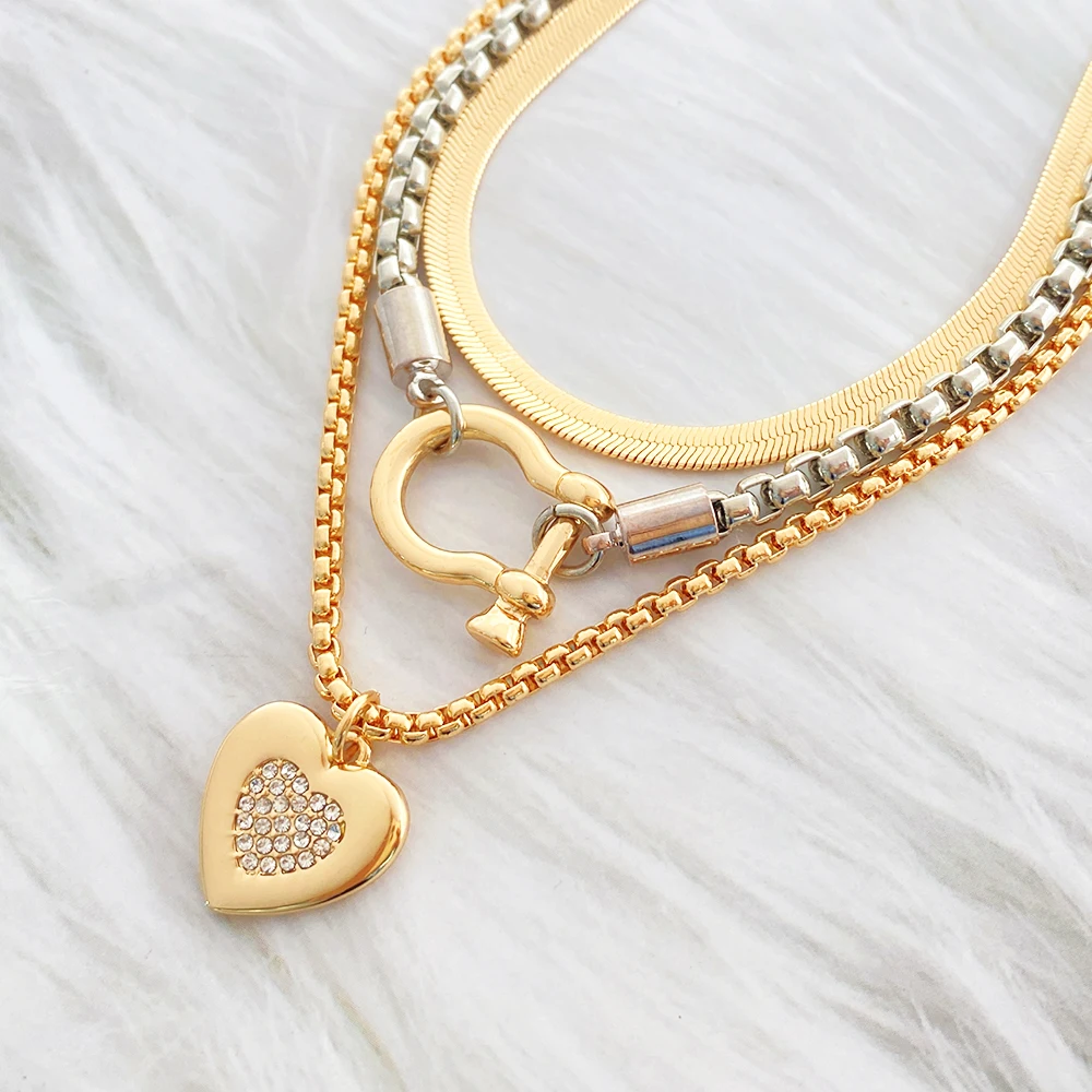 Introducing, the trendy and stylish Fashion Jewelry Multi Layer Carabiner Heart Pendant CHOKER Box Chain Necklace from HQCMLA. This unique necklace is sure to make a statement and add a touch of glam to any outfit.