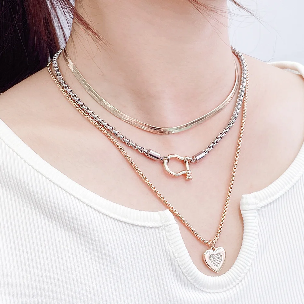 Add a touch of personality to your look with the Fashion Jewelry Multi Layer Carabiner Heart Pendant CHOKER Box Chain Necklace from HQCMLA. Whether you're looking to elevate your everyday style or make a statement for a special occasion, this necklace is the perfect choice. Order yours today and elevate your jewelry collection to the next level