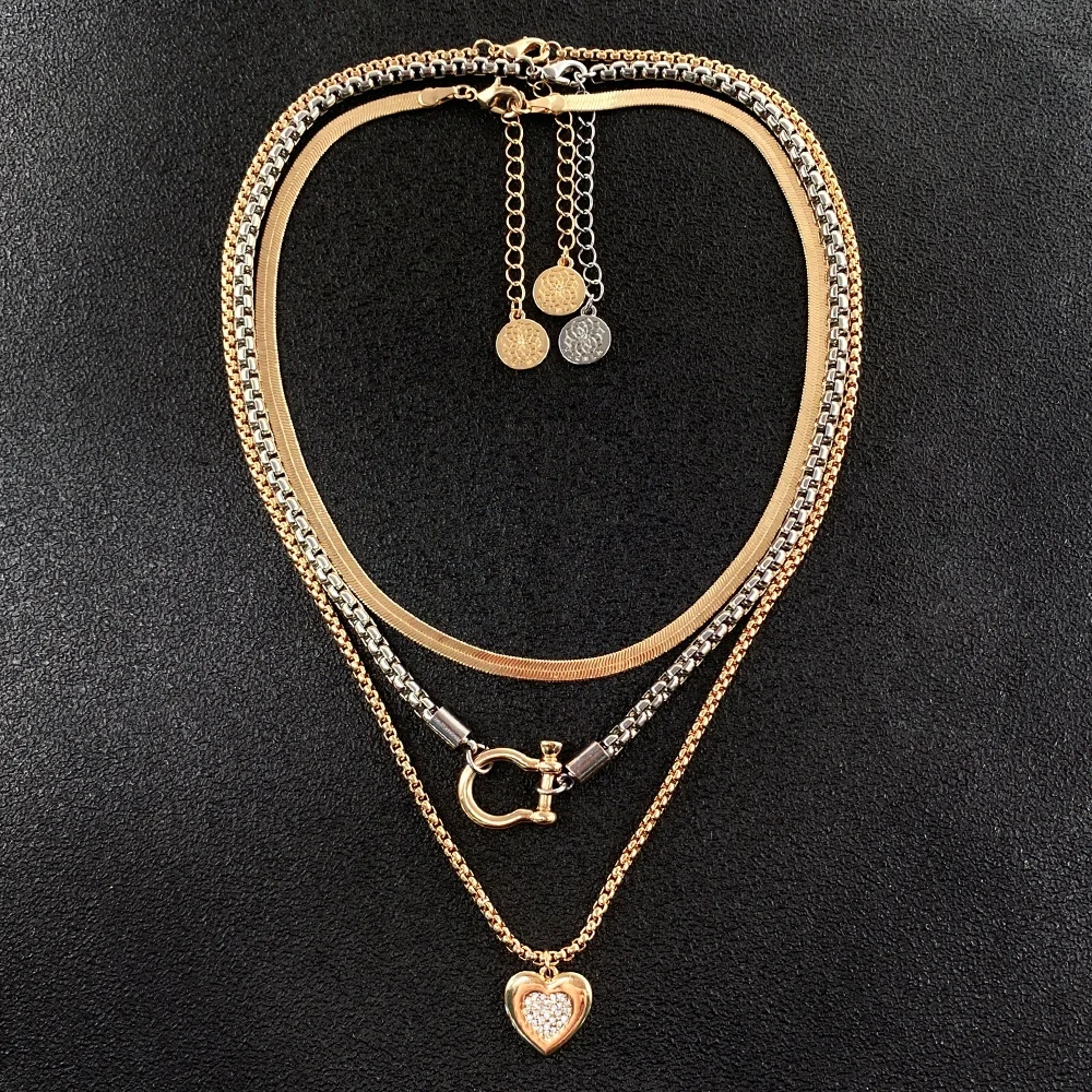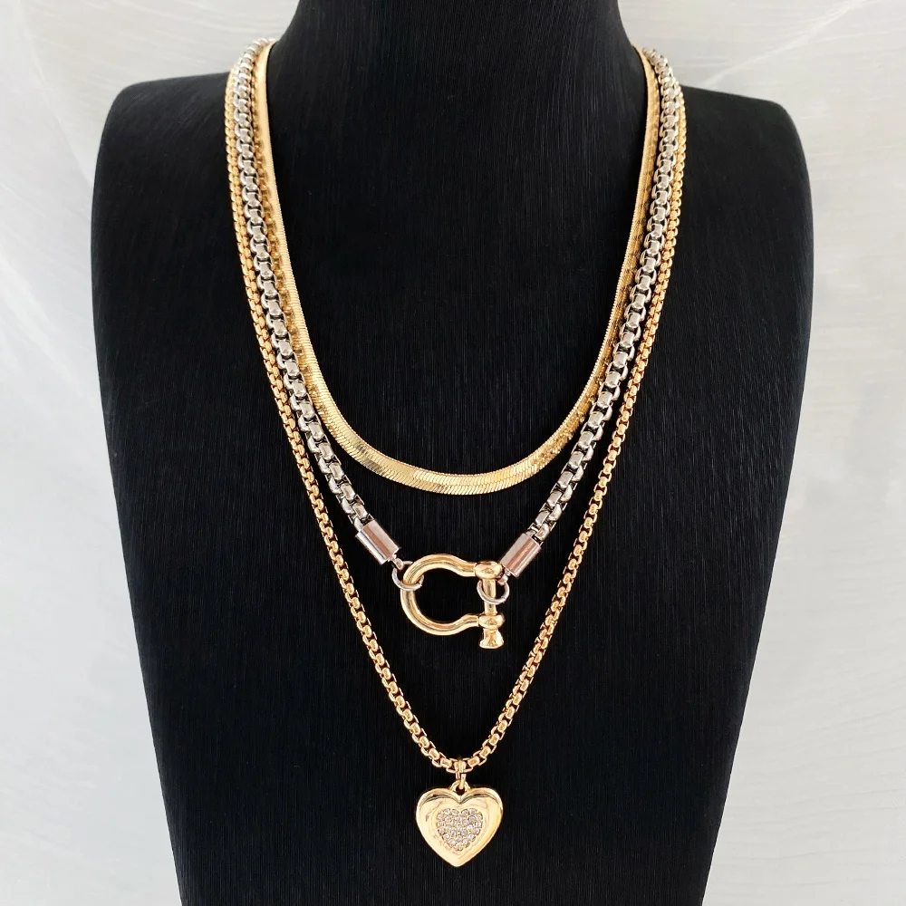 The necklace features a multi-layer design with a chunky horseshoe pendant that is both eye-catching and on-trend. The carabiner heart pendant adds a touch of edginess to the necklace, making it perfect for both men and women who want to stand out from the crowd.