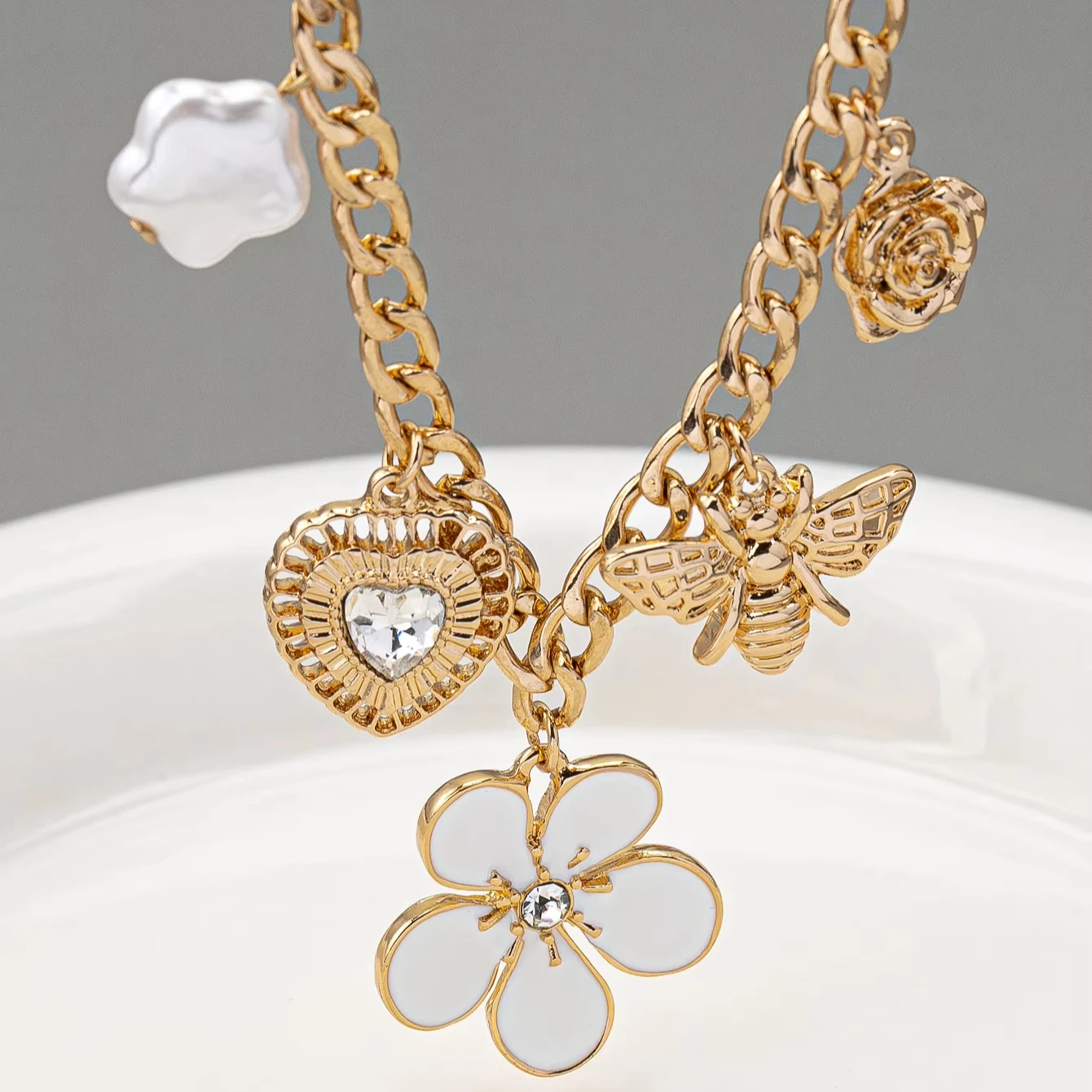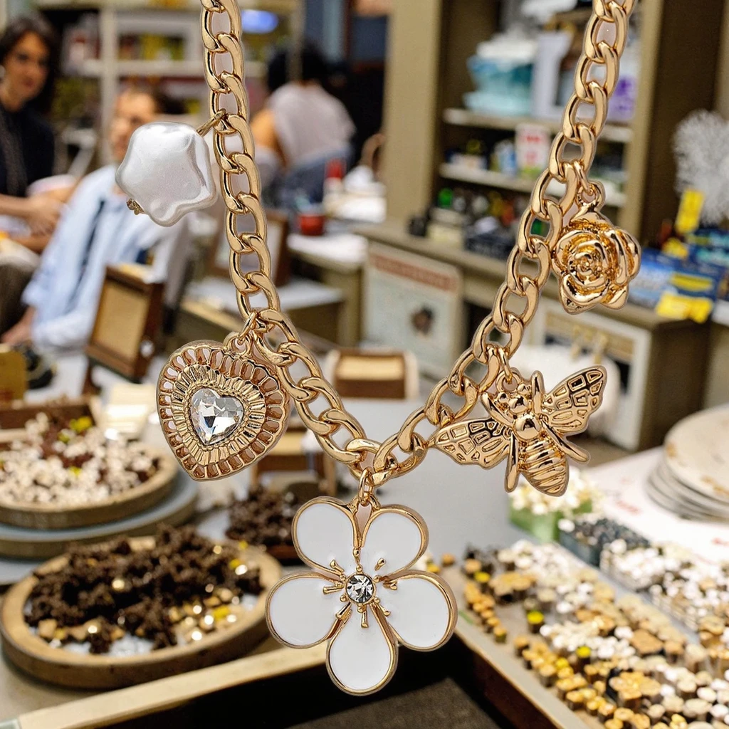 Fashion Jewelry Sets Necklaces Charms Necklace Flower Bee Heart Rhinestone Pendant Necklaces for Women