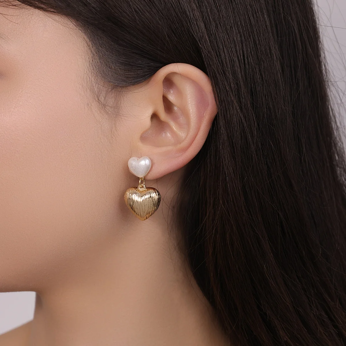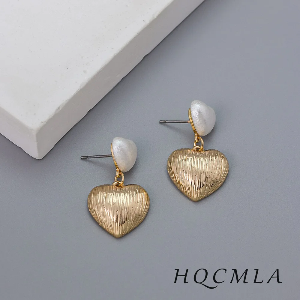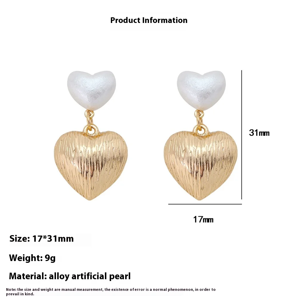 High-End Female Joker Drop Earrings Unique Love Heart Pattern Pearl Trendy Cross-Border Alloy for Religious Party Use