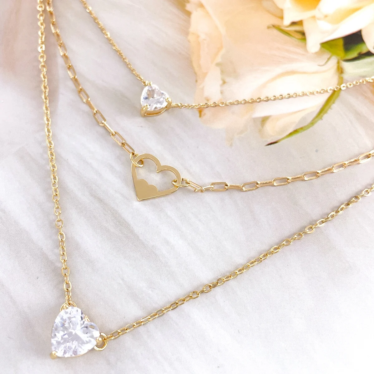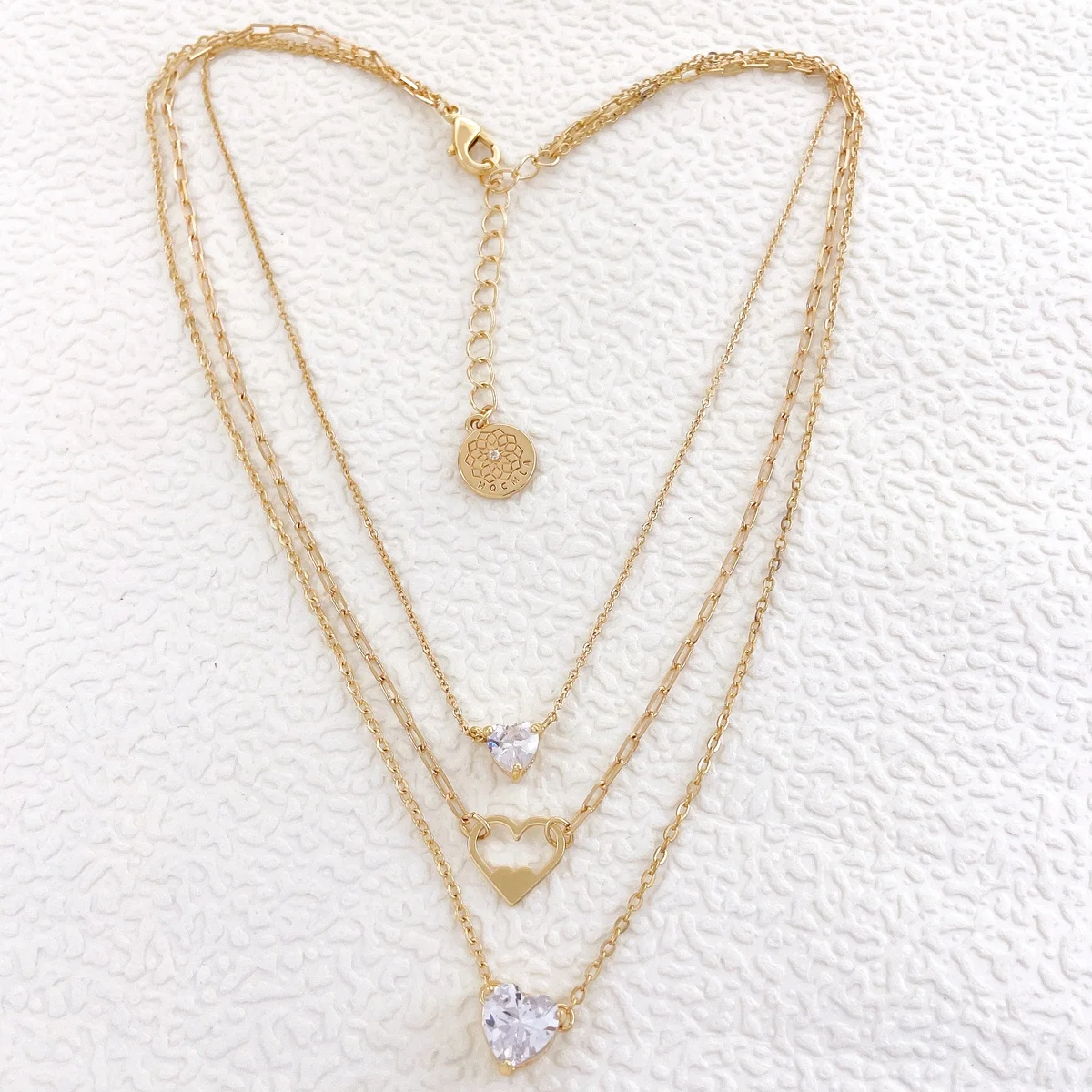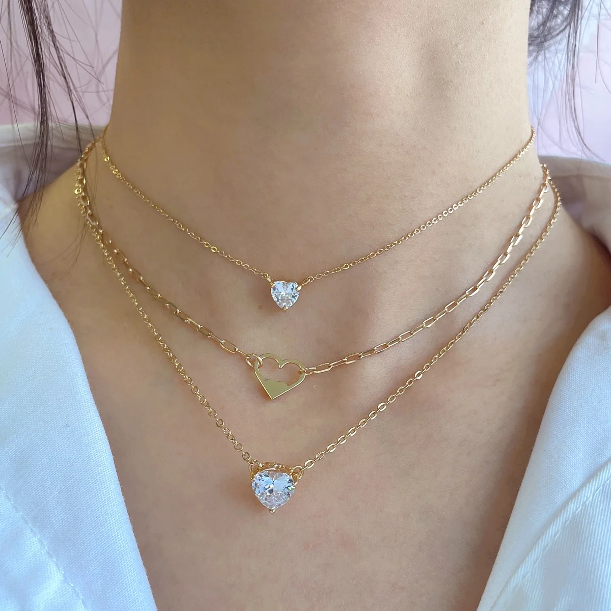 Featuring a multi-layer link chain design, this necklace adds a touch of sophistication to any outfit. The gold plating gives it a luxurious look, while the HQCMLA zircon heart pendant adds a touch of sparkle and glamour. Whether you're dressing up for a night out or adding a touch of sparkle to your everyday look, this necklace is the perfect accessory.