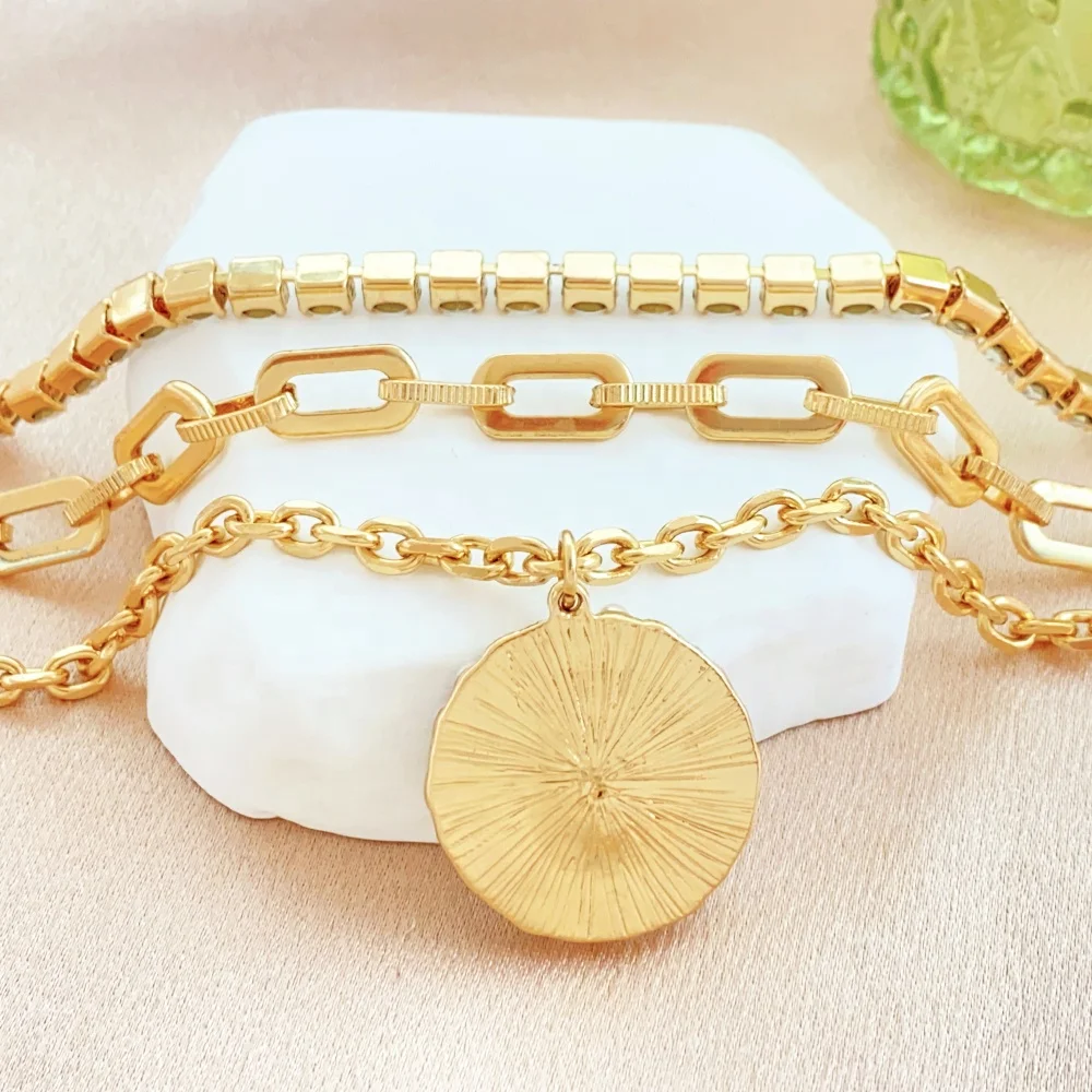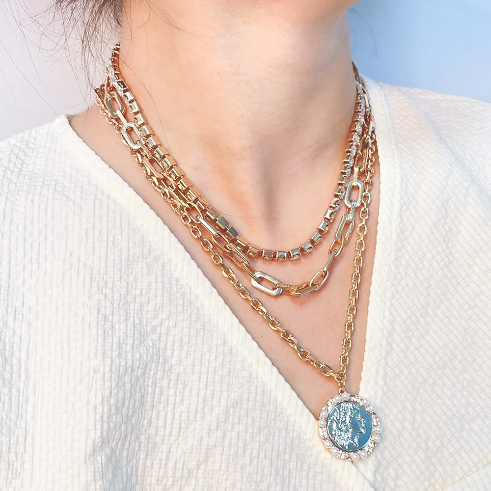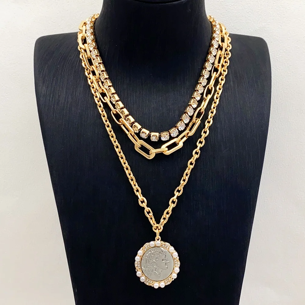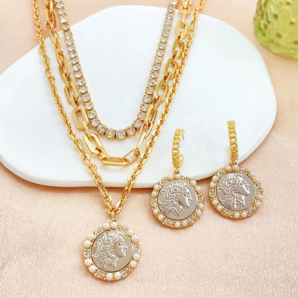 Crafted with the highest quality materials, this necklace earring set is not only stylish but also durable. The multi-layer gold link chain adds a luxurious touch, while the pearls and crystals give it a touch of elegance. The earrings are designed to perfectly complement the necklace, creating a cohesive and polished look.