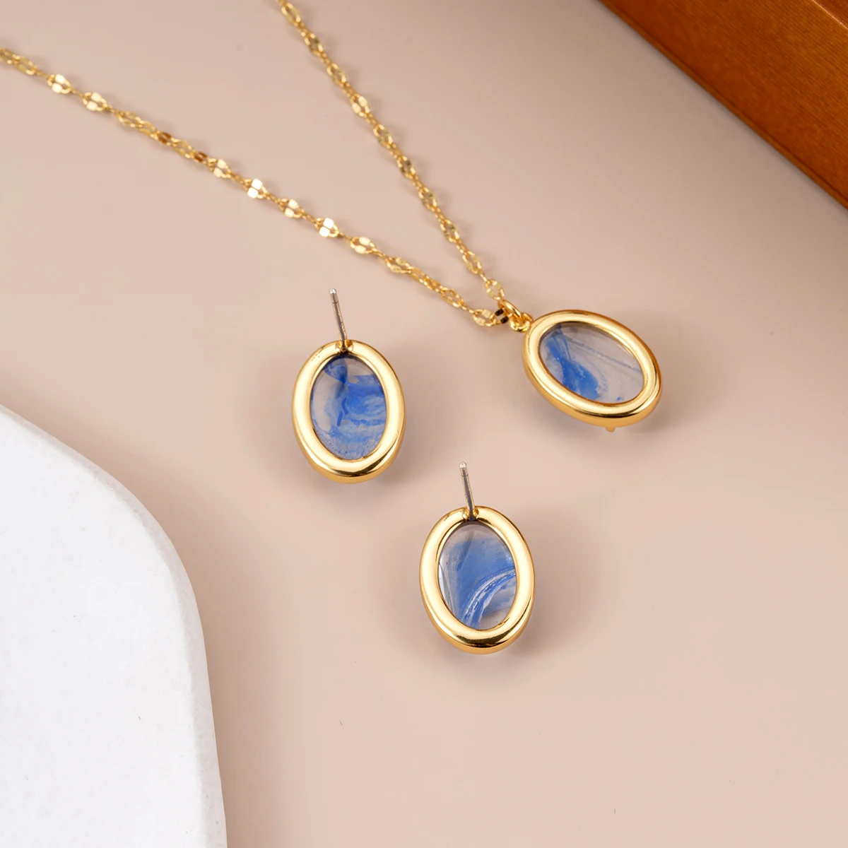 HQCMLA 2026 Women's Fashion Classic Brass Glass Pendant Necklace and Drop Earrings Set Silver Plated Shandong for Gift