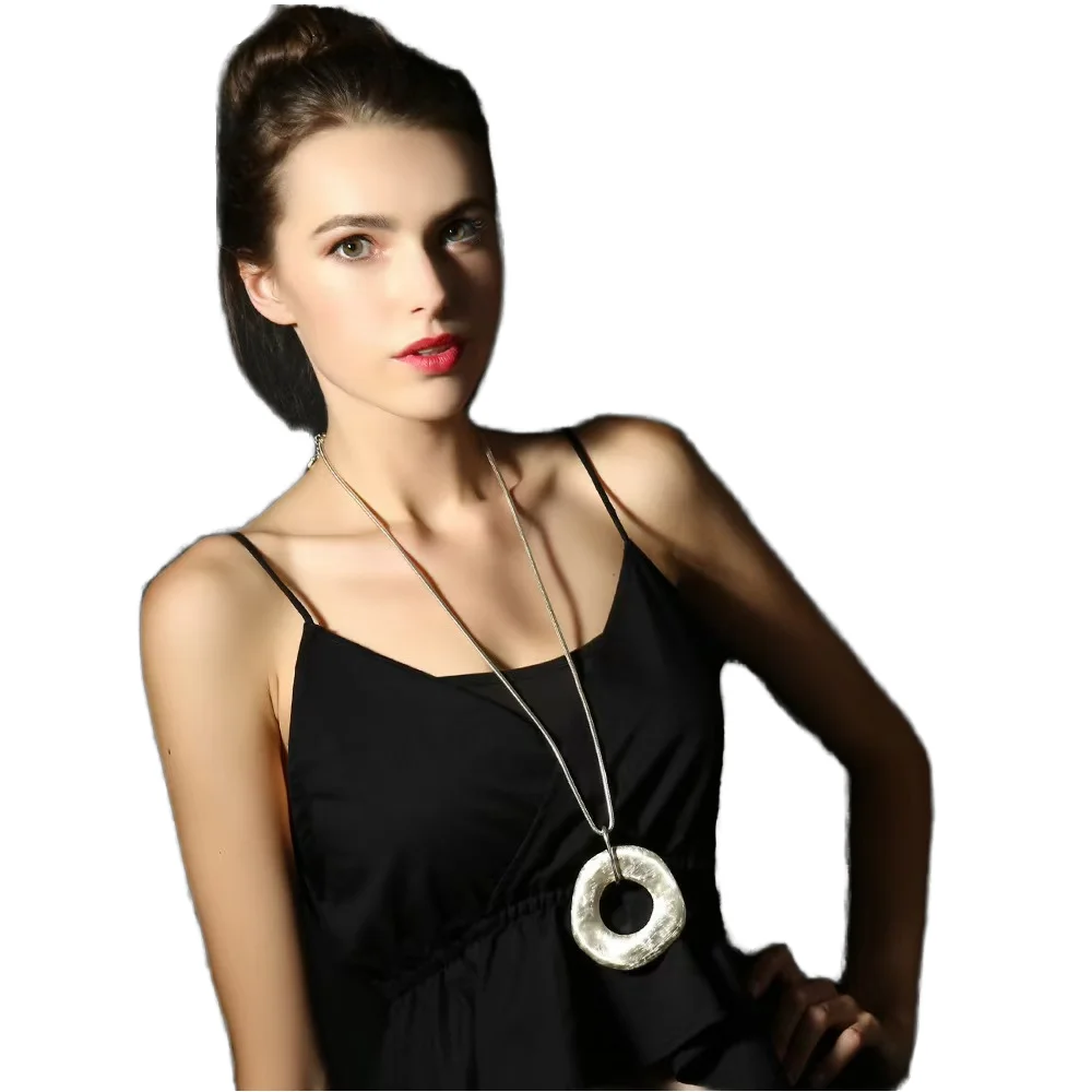 Introducing, the HQCMLA Jewelry Custom Wholesale Alloy European American Gold Plated Hip Hop Long Chain Geometric Pendant Necklaces for Women! This stunning piece is perfect for adding a touch of glamour to any outfit.