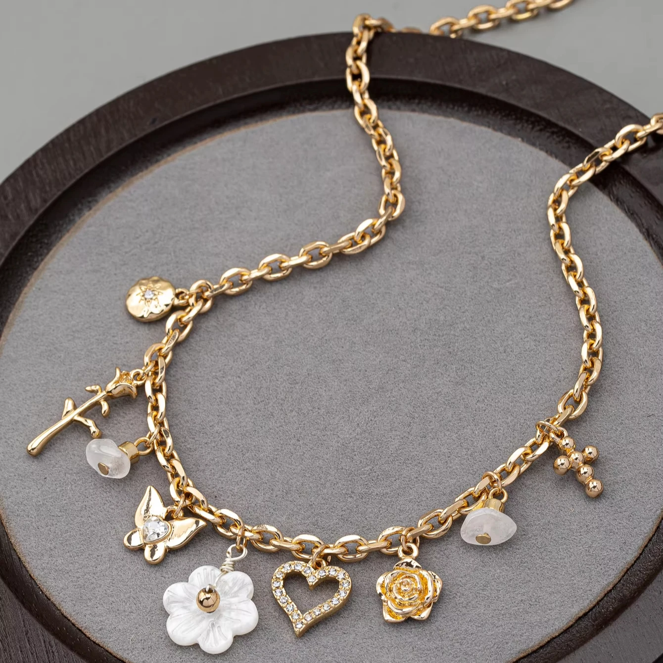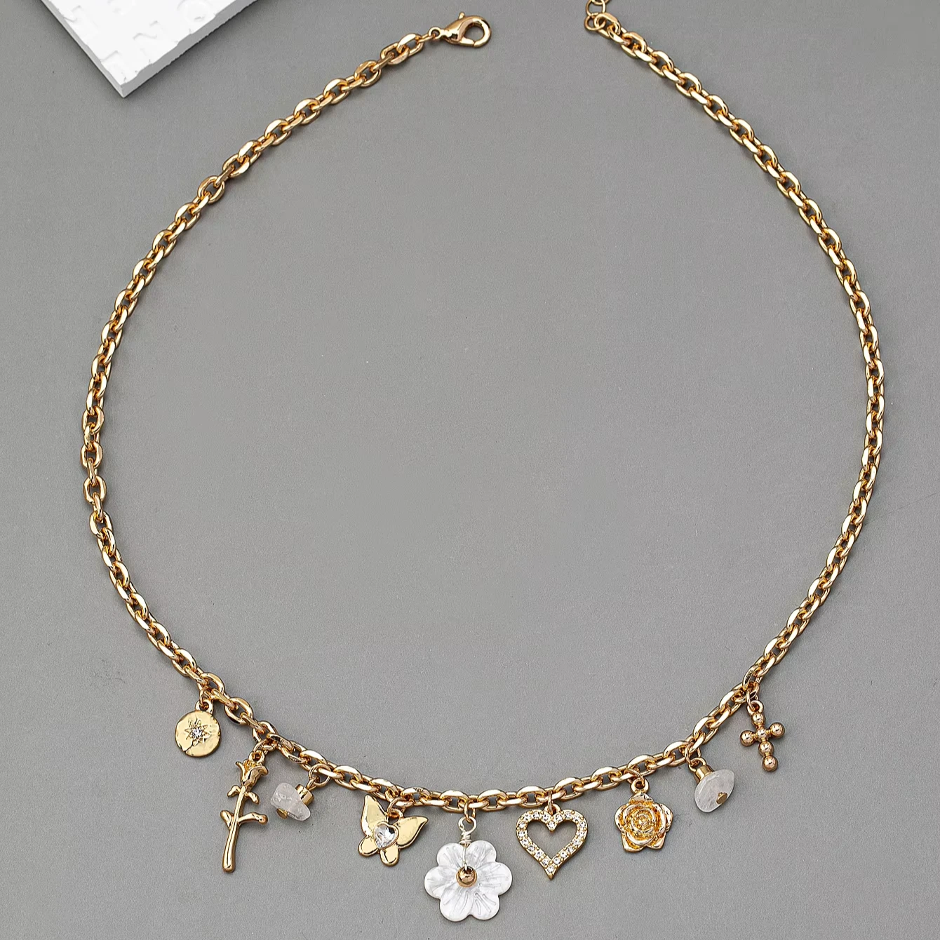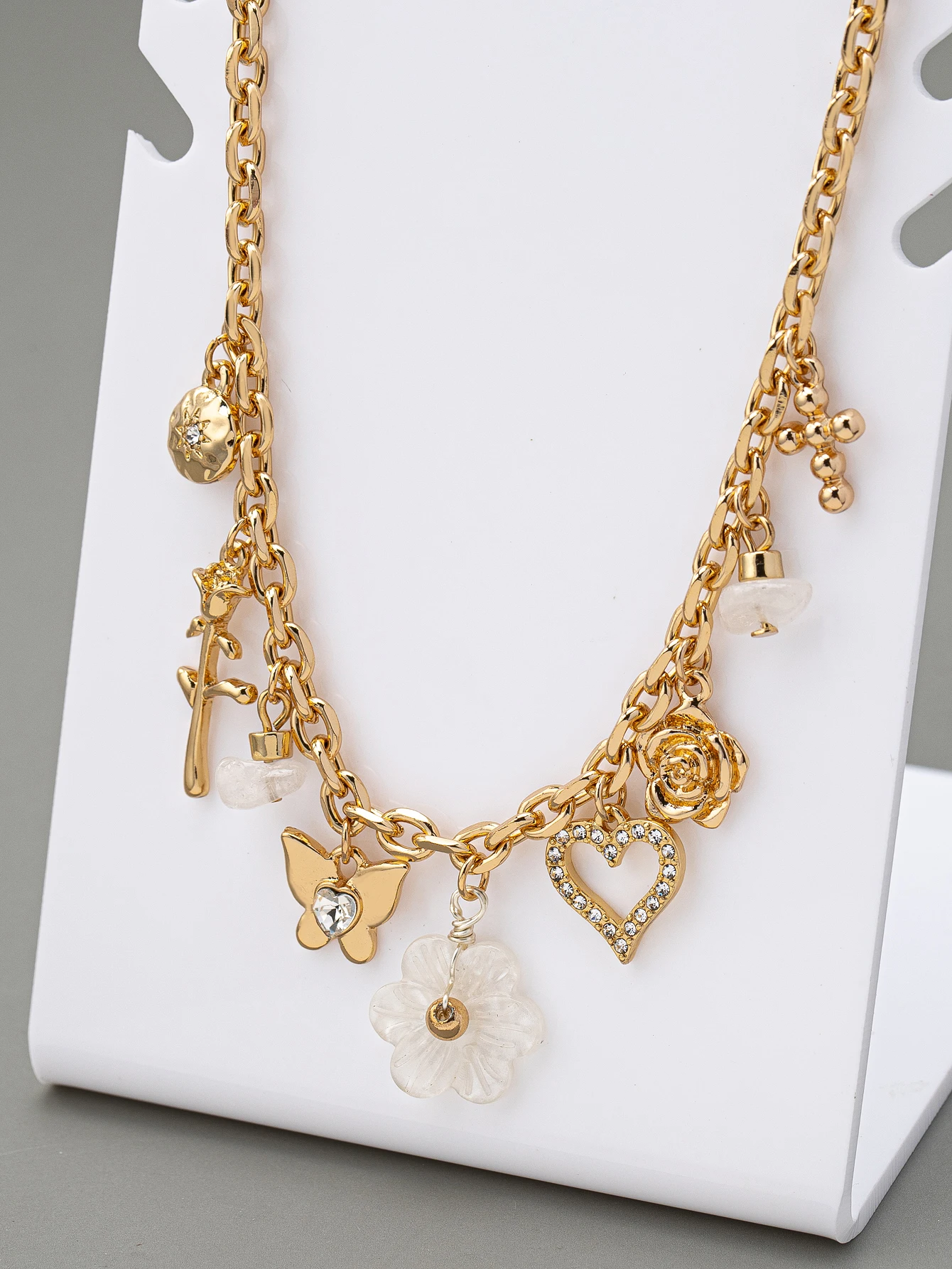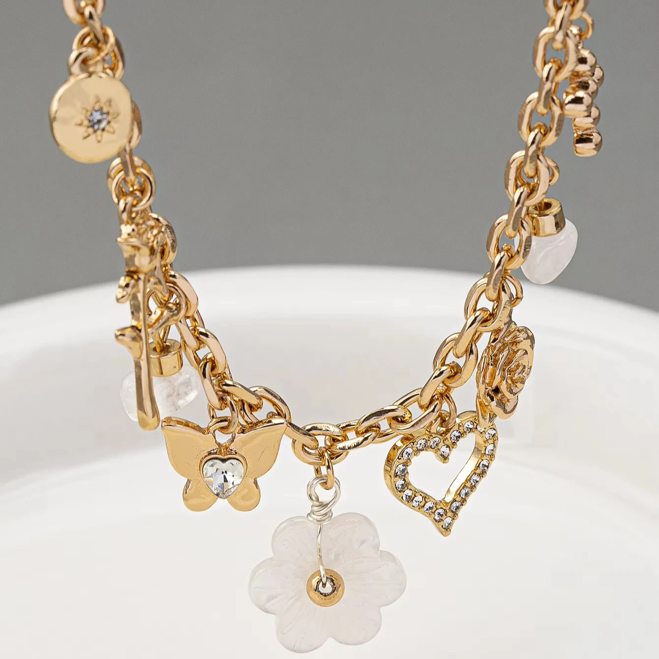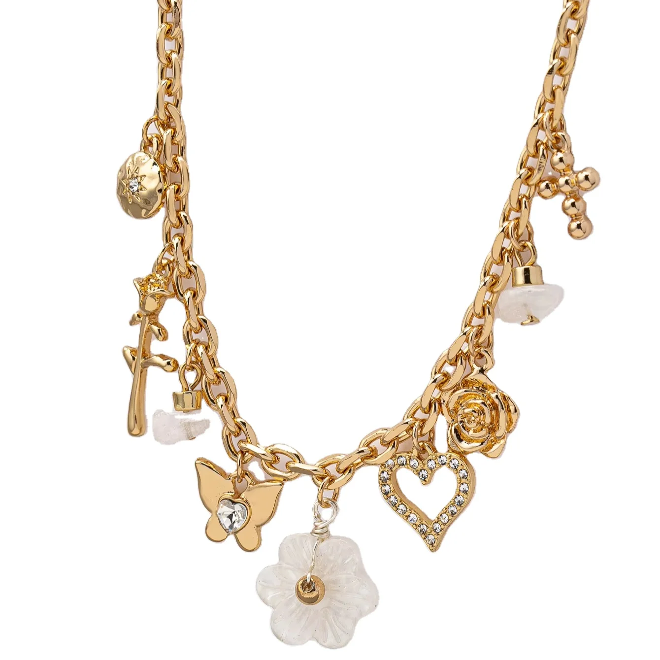Jewelry Supplier Gold Plated Charms Jewelry Flower Rhinestone butterfly Pendant Fashion Necklace Pendant Necklace for Women