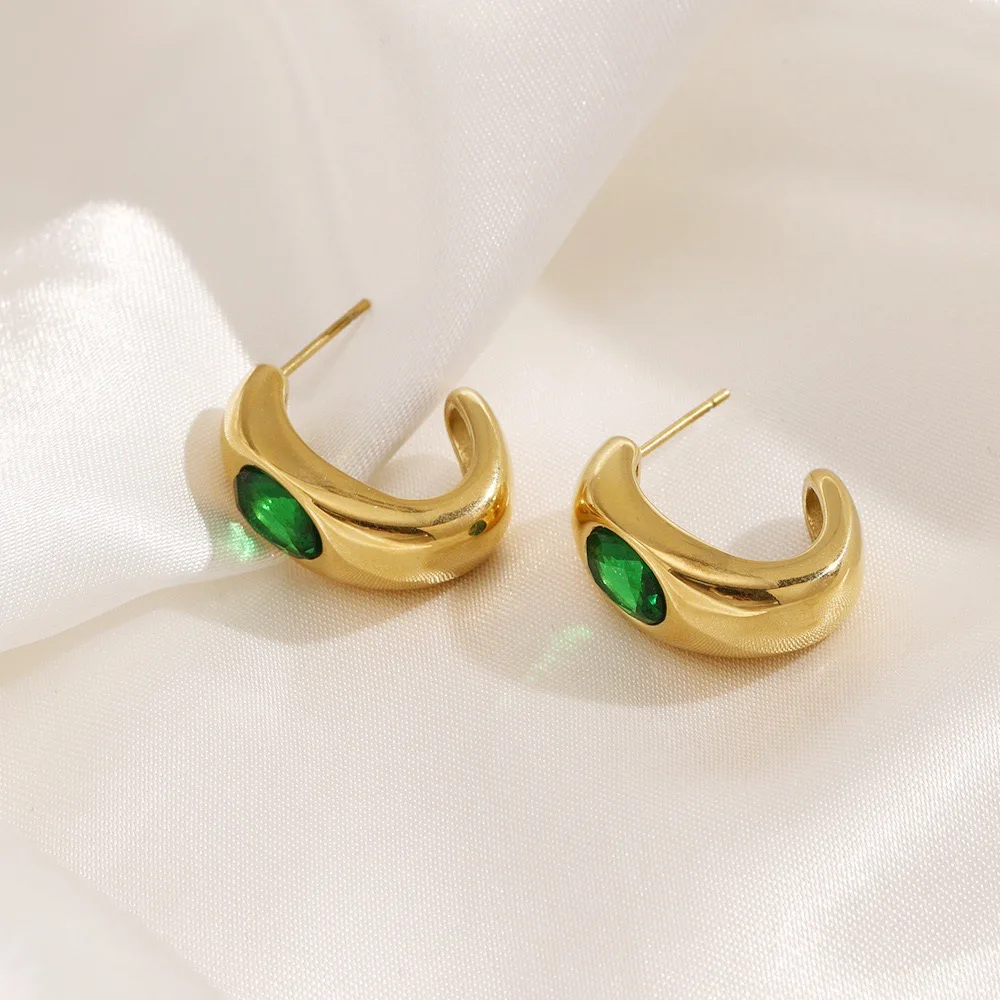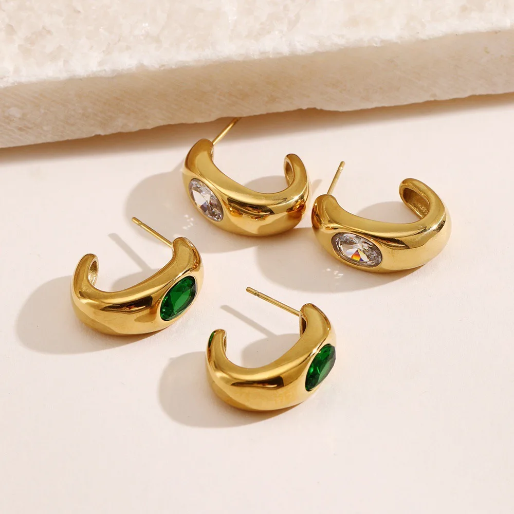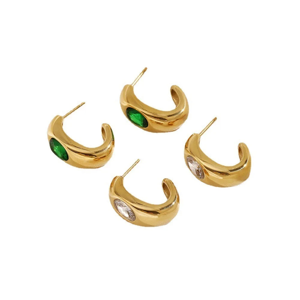Korean Jewelry New Trend Supplier Stainless Steel Gold Plated Glass Stone Fashion Designer C Hoop Earring Charm for Women Party