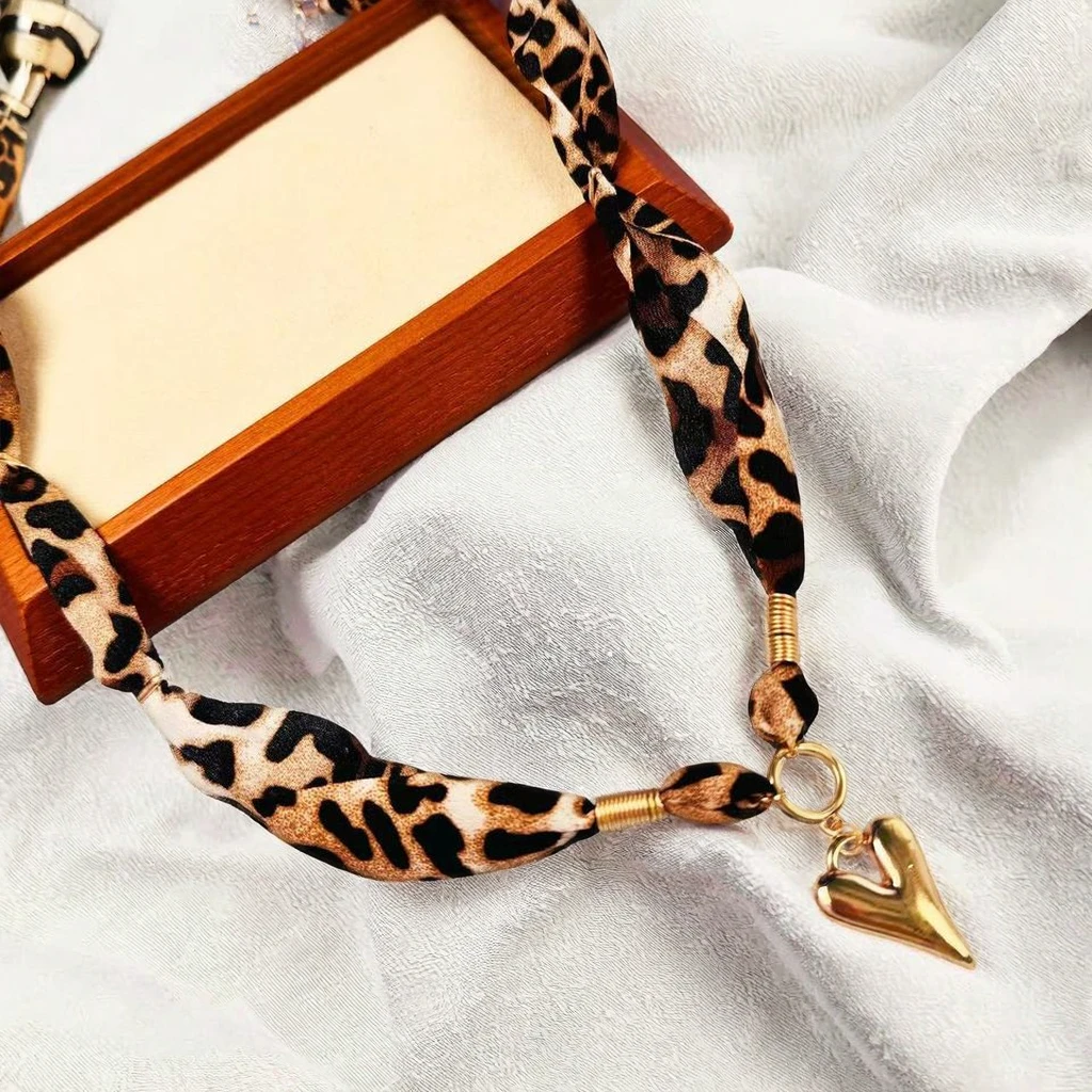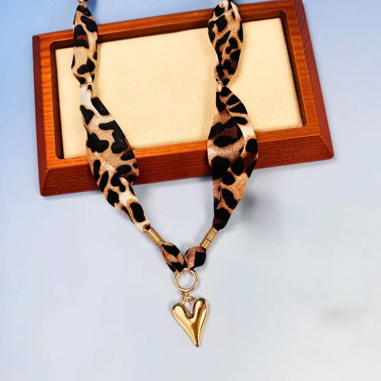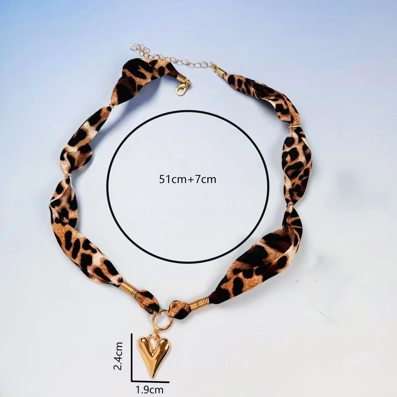 Layered Necklace European and American Retro Leopard Peach Heart Gold Plated Sweater Chain Jewelry Temperament Classic
