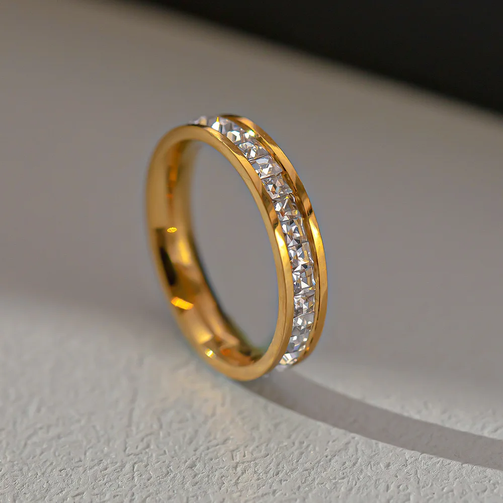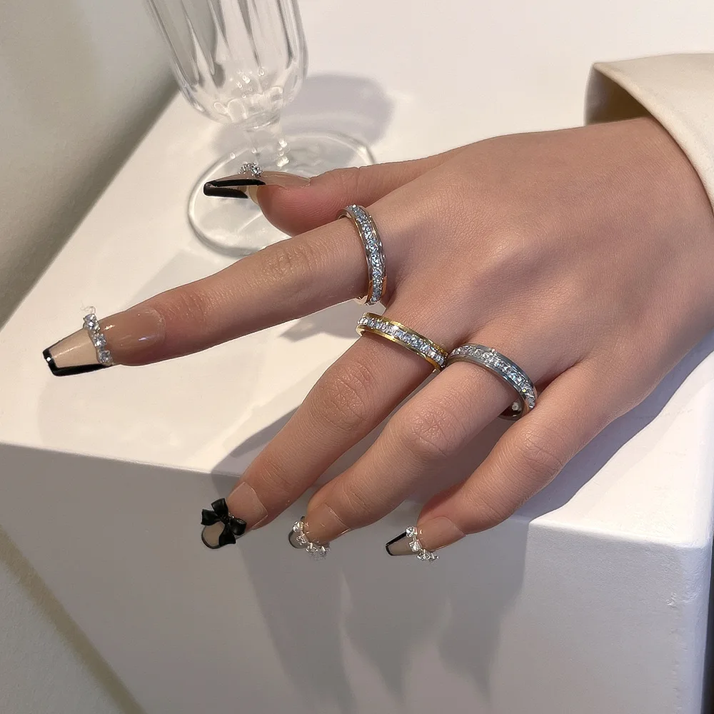 Minimalist Design 18K Gold Plated Stainless Steel Rings Fashion Jewelry for Women Rhinestone for Engagement Party Accessories