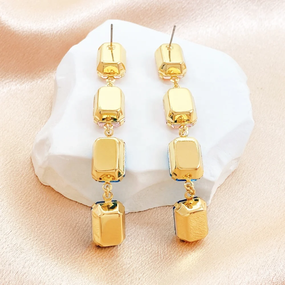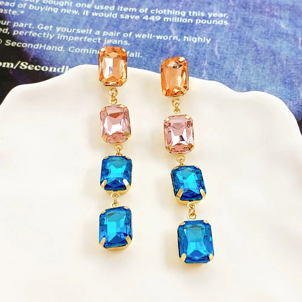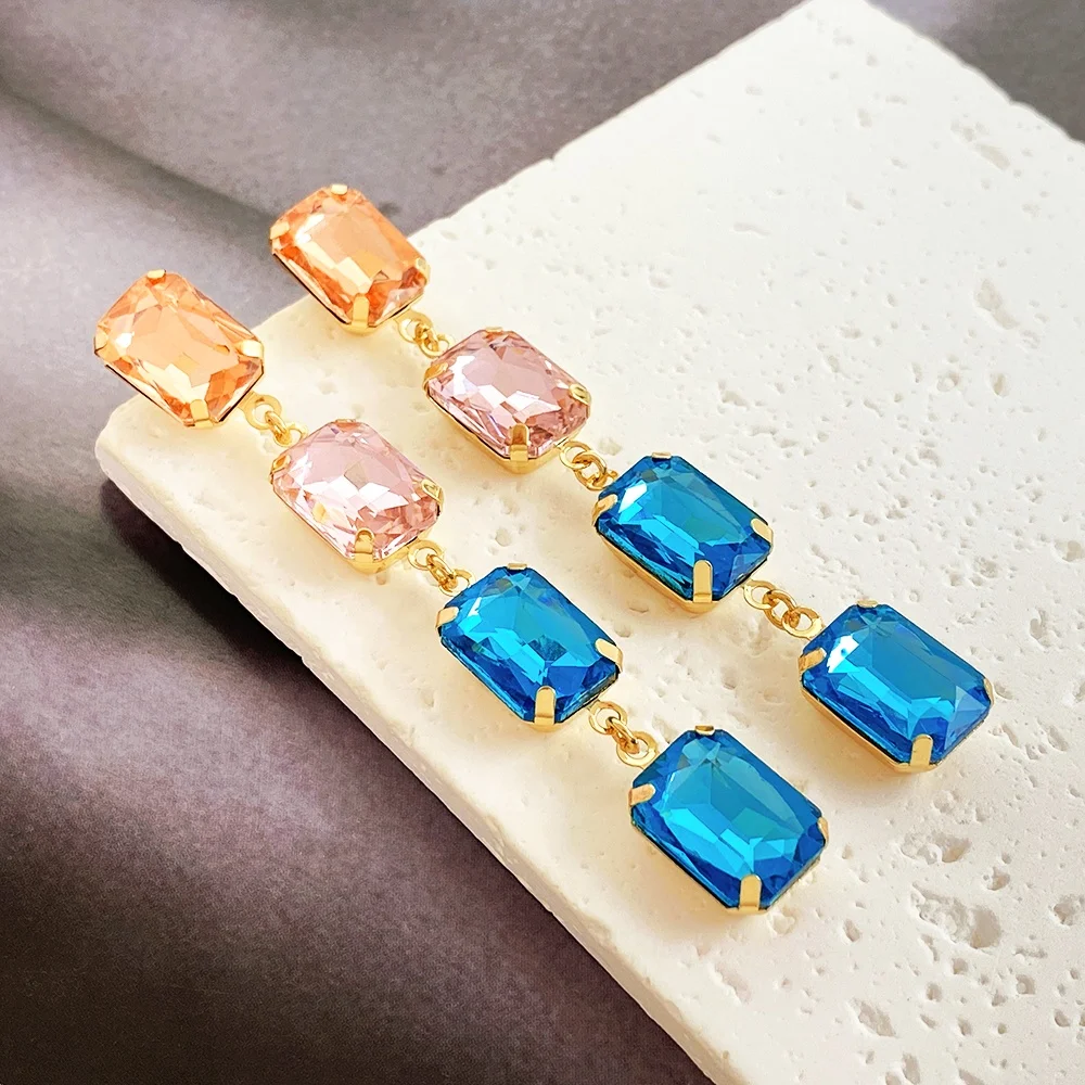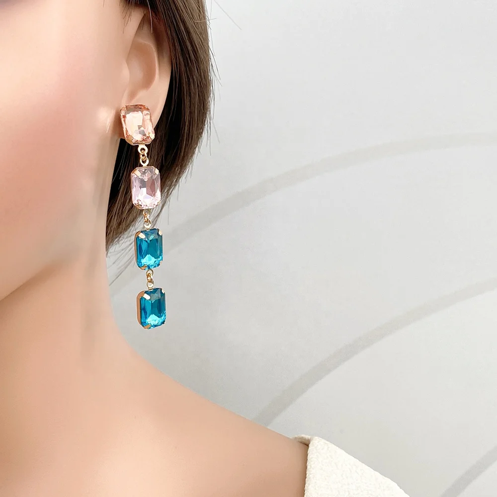 New Geometric Long Tassel Glass Crystal square Earrings Elegant Rhinestone Earrings for Weddings Perfect for Women's Ears