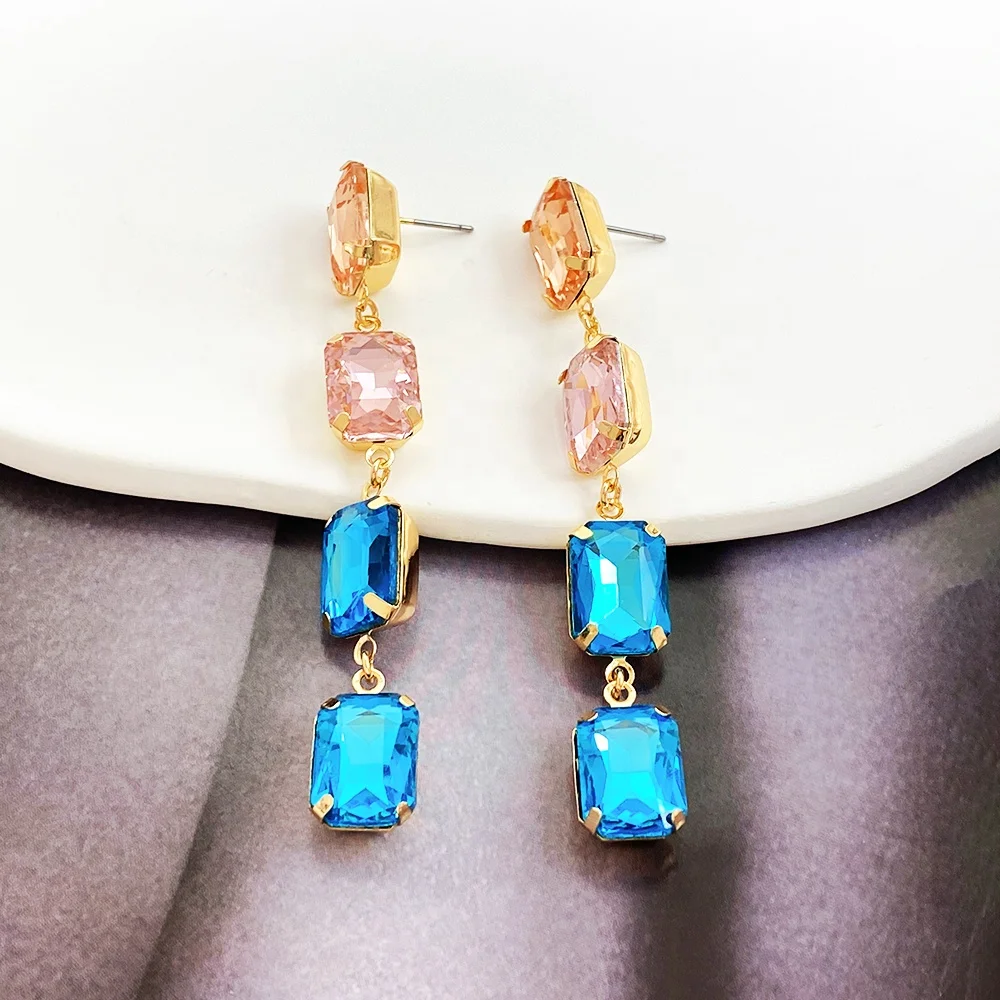 product new geometric long tassel glass crystal square earrings elegant rhinestone earrings for weddings perfect for womens ears-17
