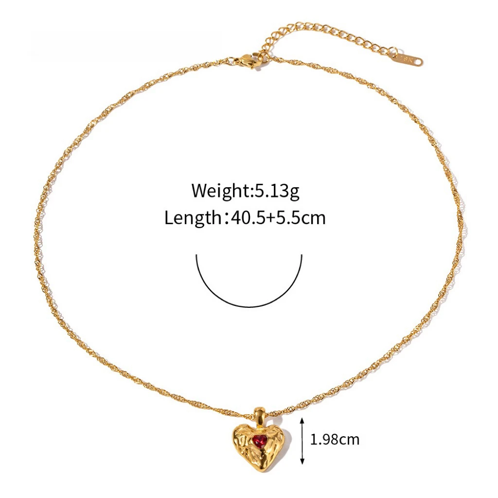 New Trend: Heart-shaped 18K Stainless Steel Heart, Colored Glass Hammer Pattern Fashion Pendant, Charming Women's Necklace