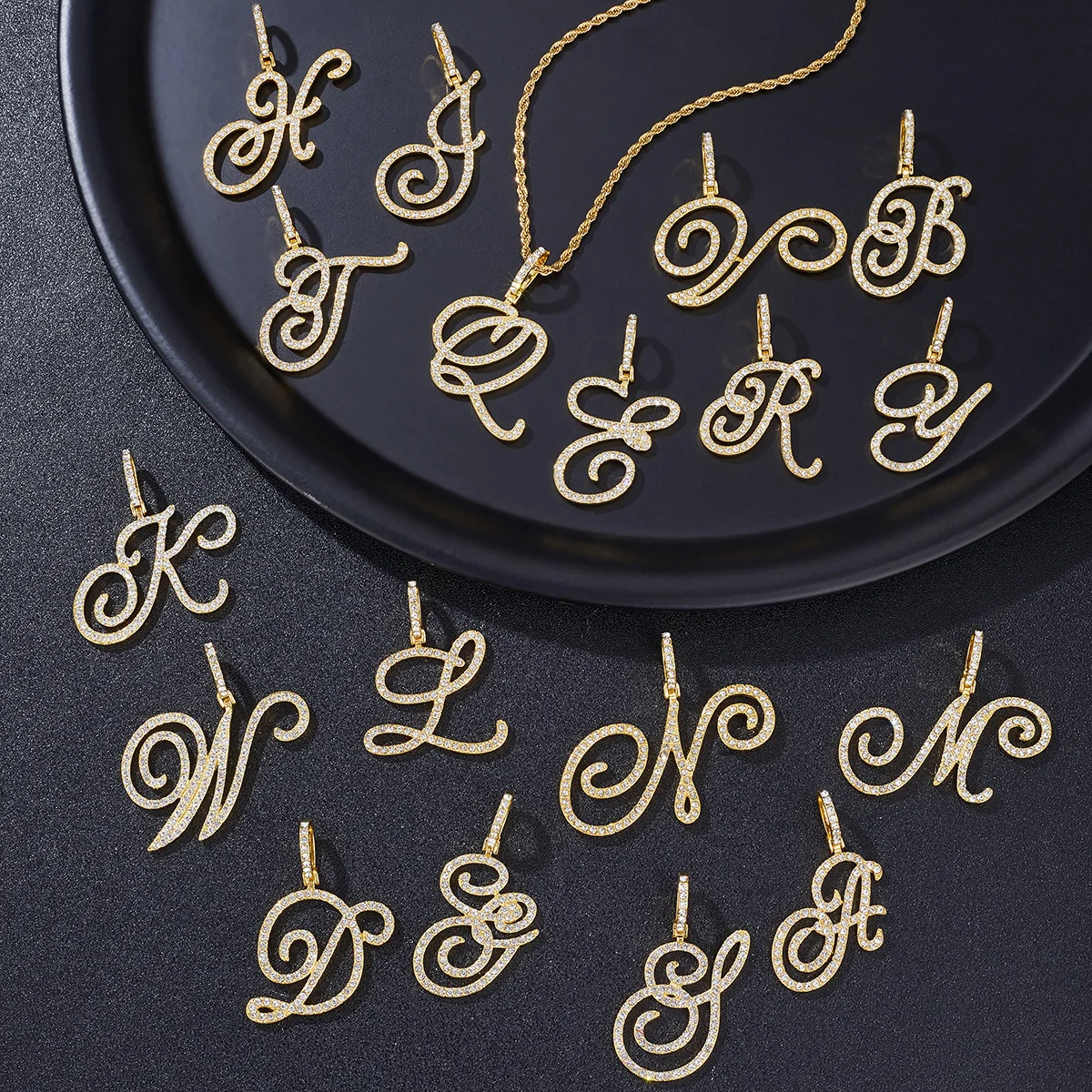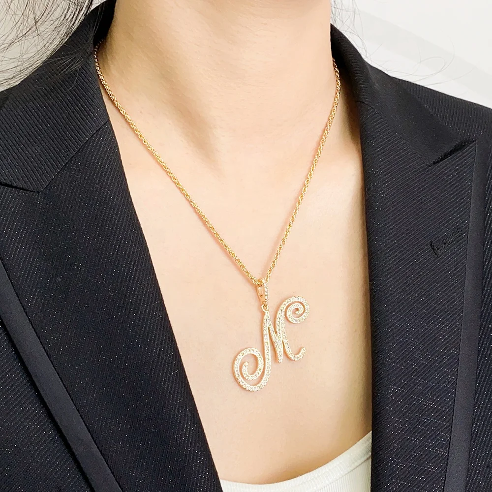 Plated Initial Letter Necklace Old English Necklace Personalized Square A-Z Alphabet Necklace Diamond Custom Jewelry Gold Alloy