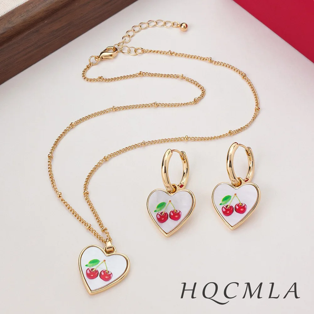Summer Female Choker Necklace and Pendant Jewelry Set Gold Plated Alloy Sweet Cherry Design Cross-Border Fashion