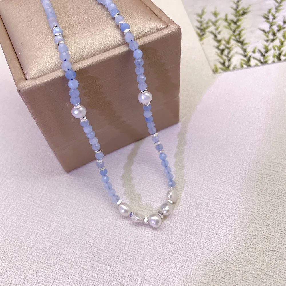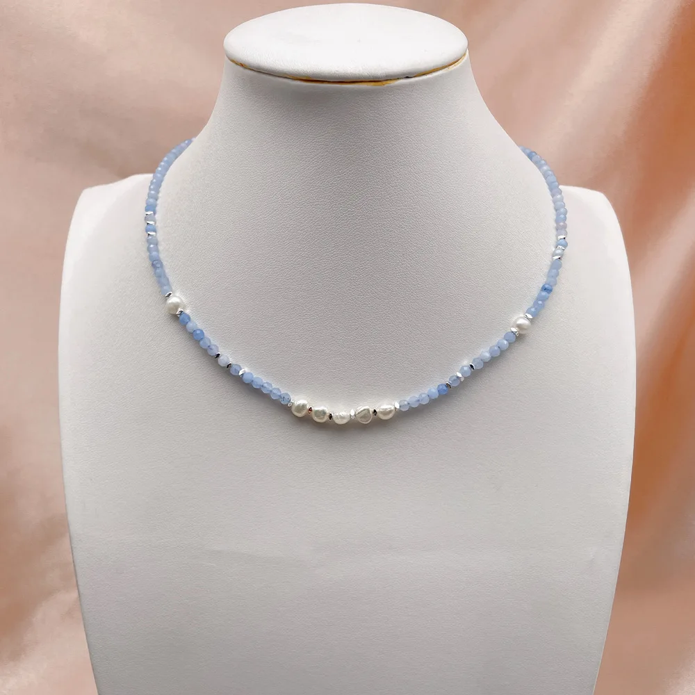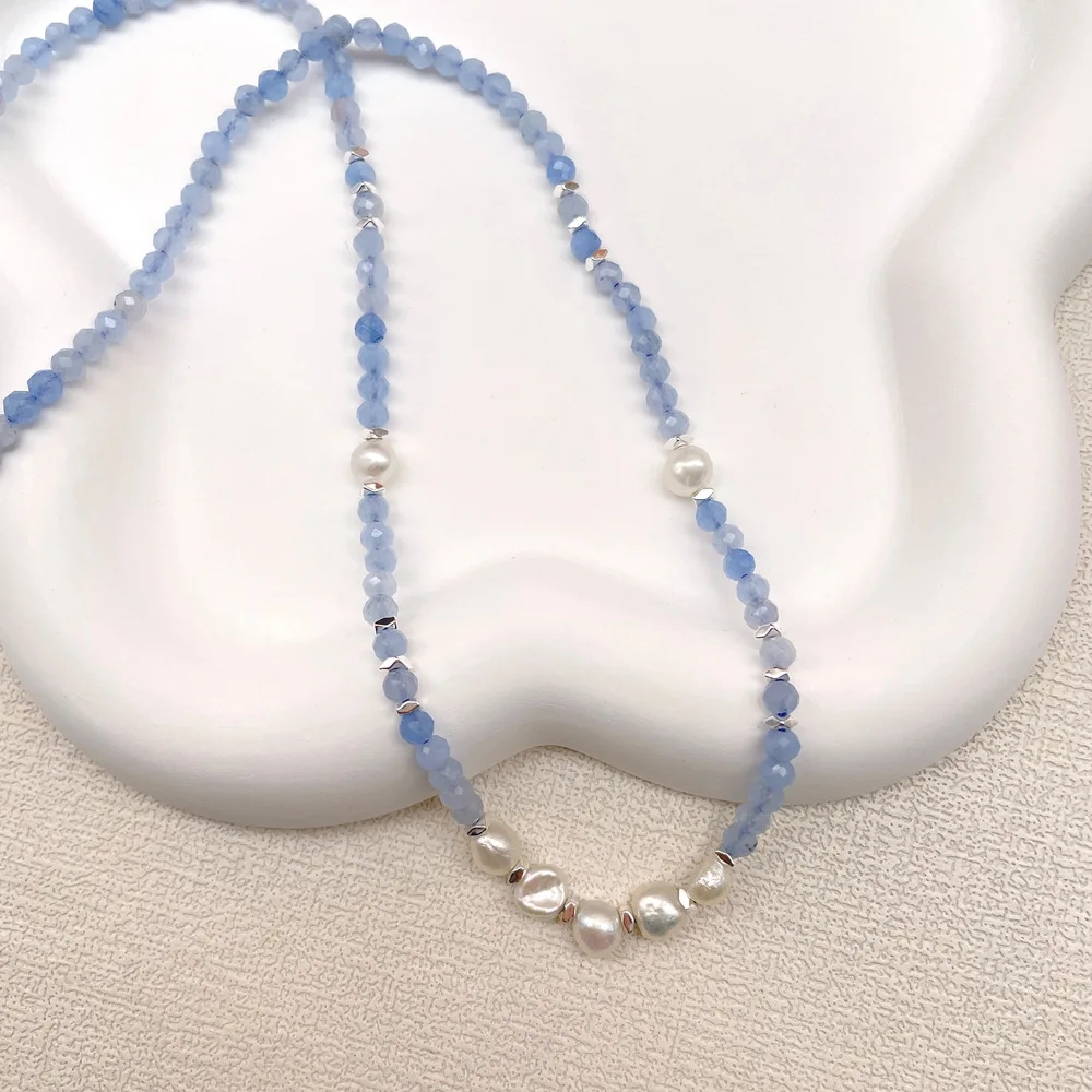 Trendy Aquamarine Toggle Necklace Simple Elegant Daily Wear with Broken Silver Baroque and Irregular Pearl Beads for Parties