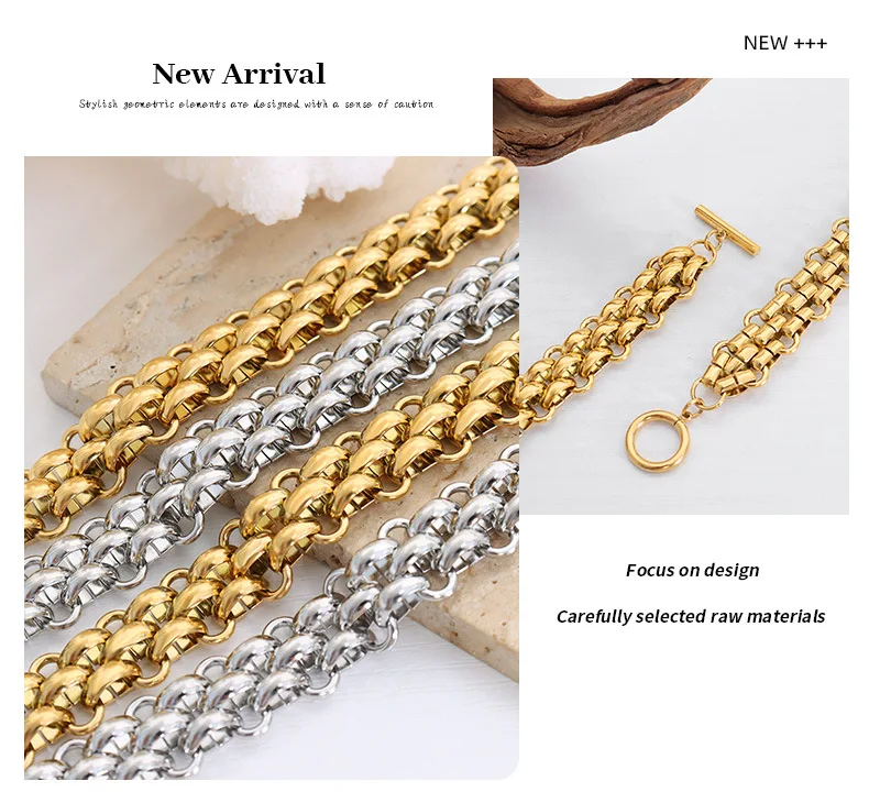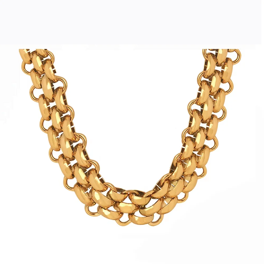 Geometric Twist Design Stainless Steel Link Chain Necklace 2mm/3mm/4mm/5mm Vacuum Plating Gold Silver for Trendy Anniversaries"