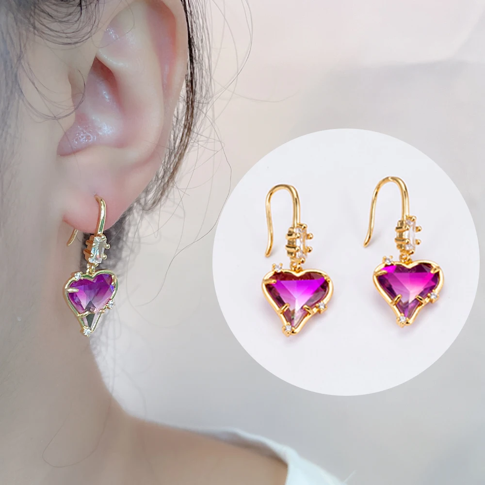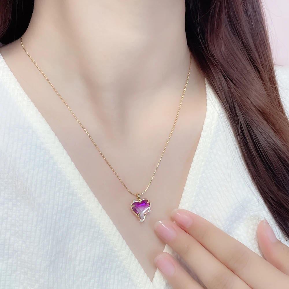 Wholesale Designer Jewelry Gold Plated Purple Pink Gradient Dual Tone Crystal Love Heart Pendant Necklace Earring Set for Women