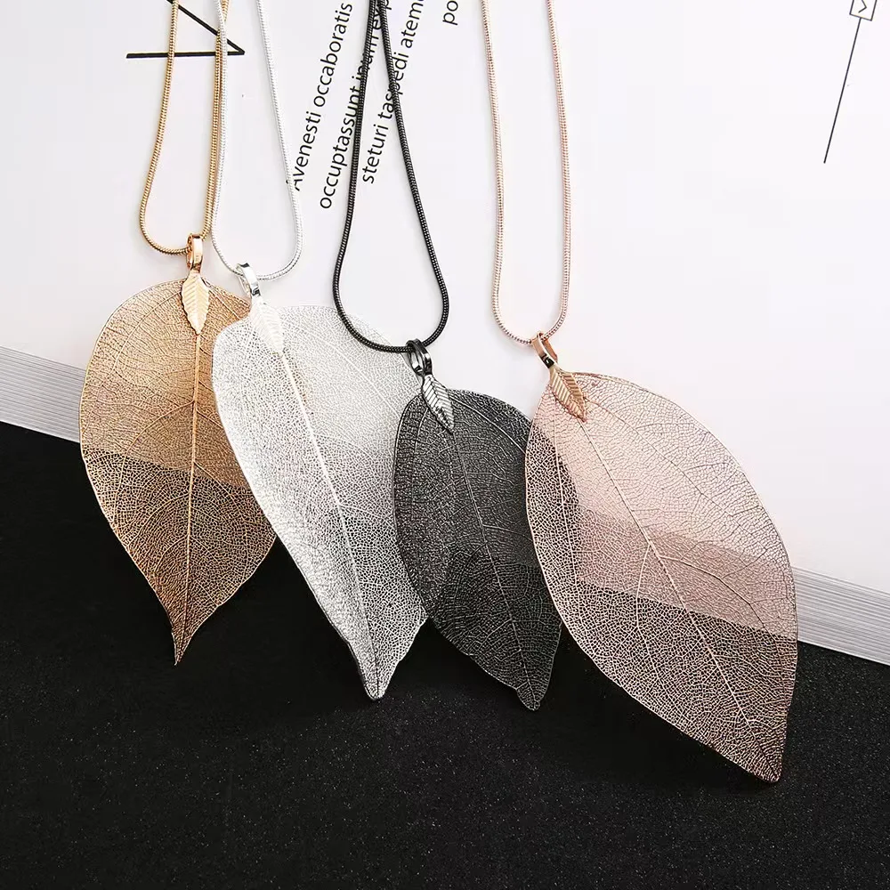 Wholesale Fashion Jewelry for Women Gold-Plated Alloy Link Pendant Necklace Autumn/Winter Charm Couple Leaf Design for Women
