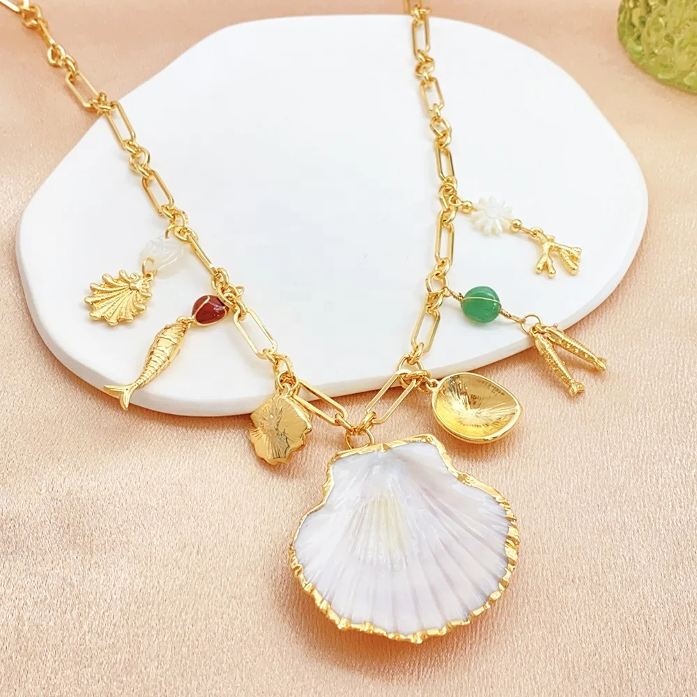 The Wholesale Fashion Sea-Themed Fish Conch Pearl Pendant Necklace is also a great gift idea for any woman who loves ocean-inspired jewelry. Whether it's for a birthday, anniversary, or special occasion, this necklace is a thoughtful and stylish gift that will be cherished for years to come.