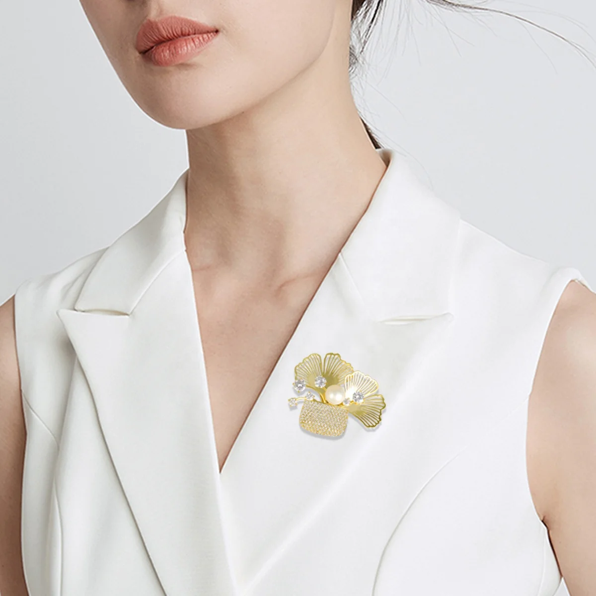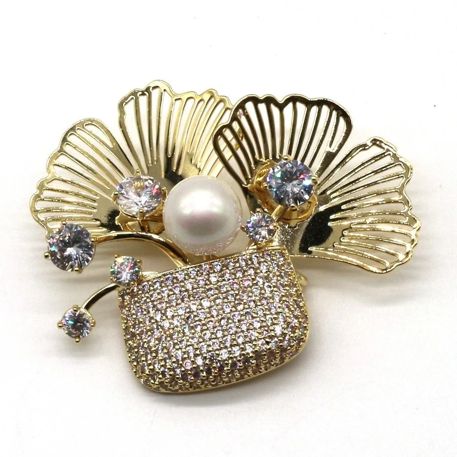 Women Brooch Fashion Custom Wholesale Gold Plated Pearl Diamond Flowers Brooch Korean Jewelry Luxury Designer Jewelry for Women