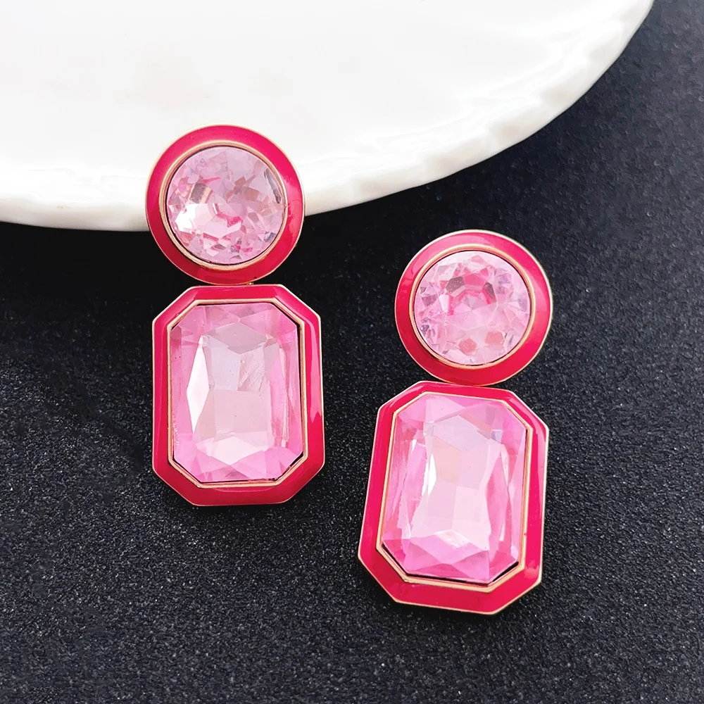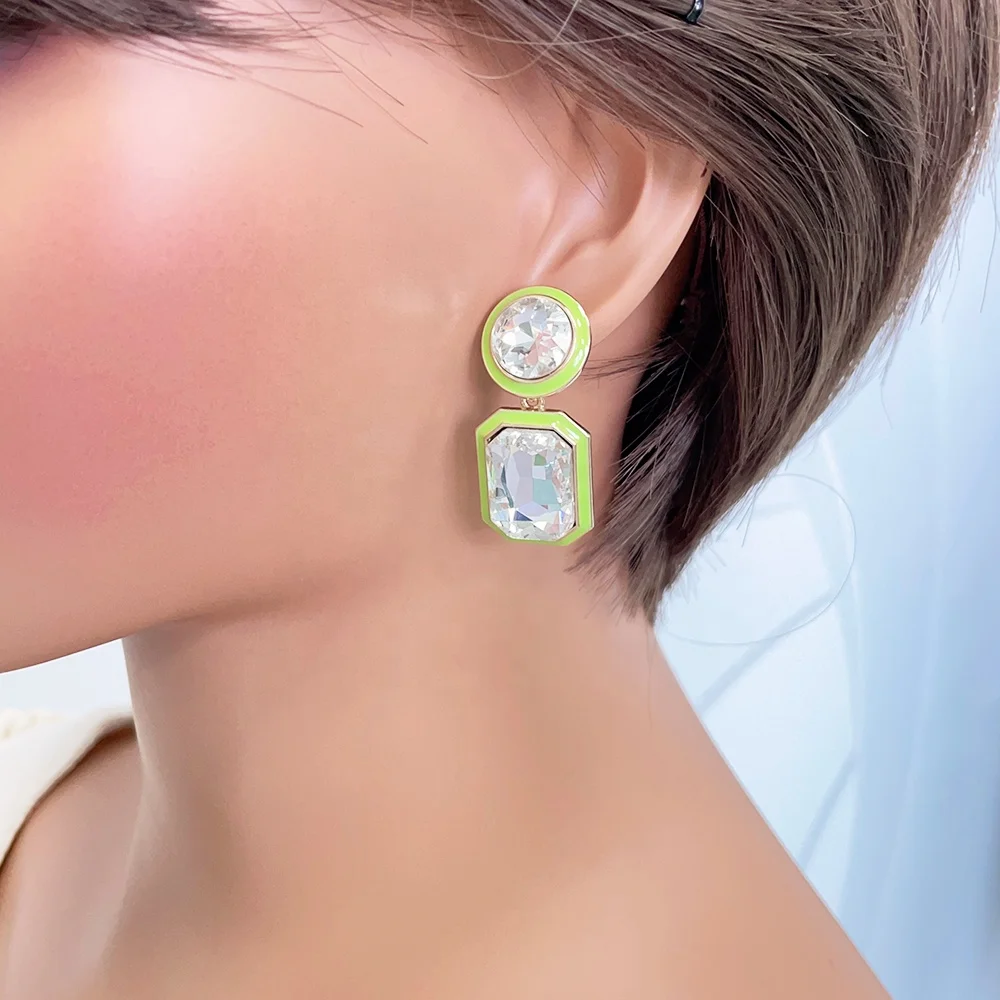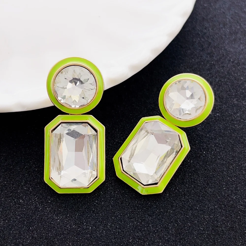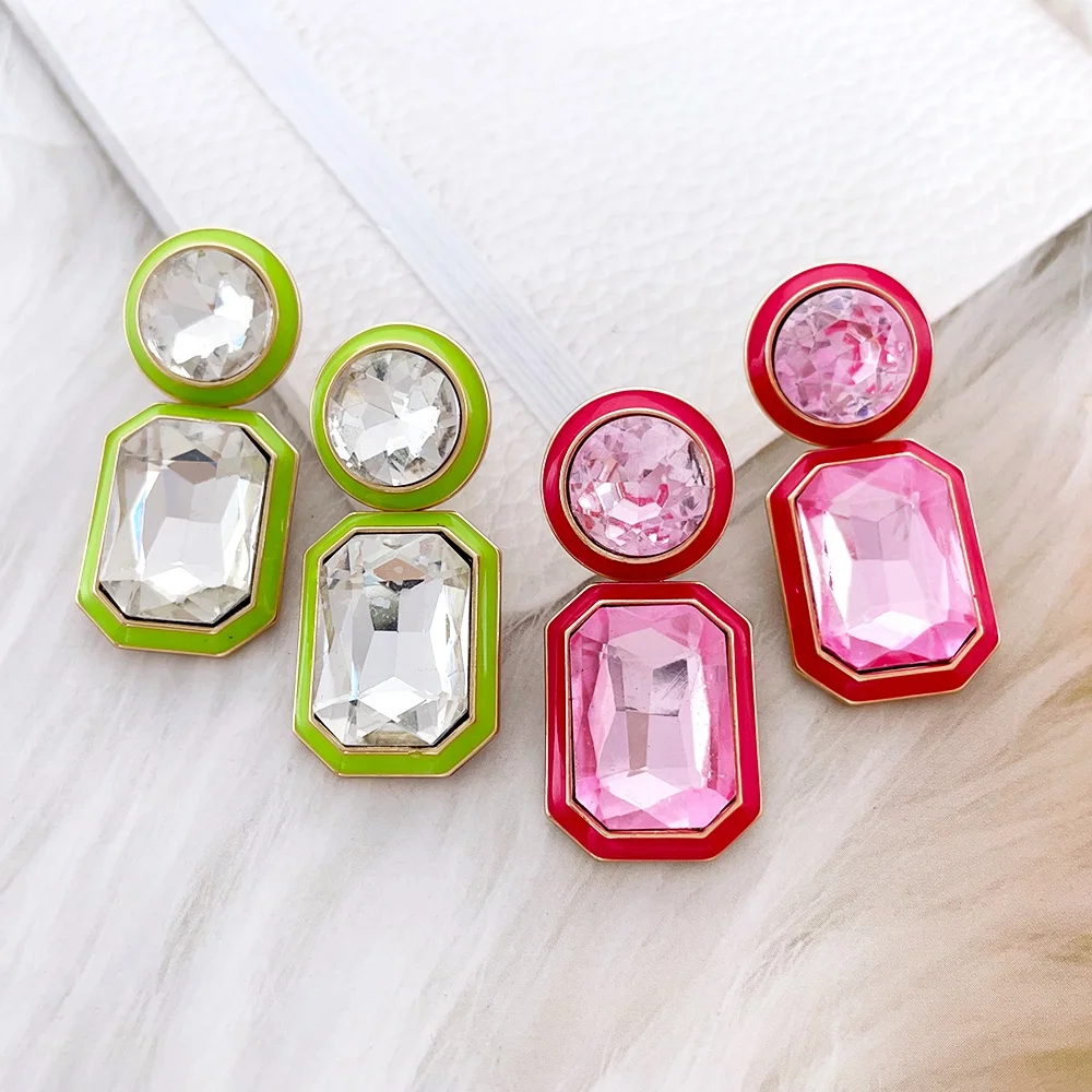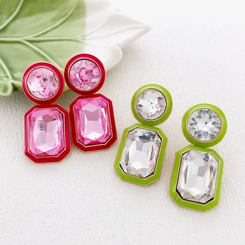 Women's Fashion Jewelry Wholesale Crystal Diamond Colorful Enamel Drop Gold Plated Stud Earrings Geometric Classic Style Alloy