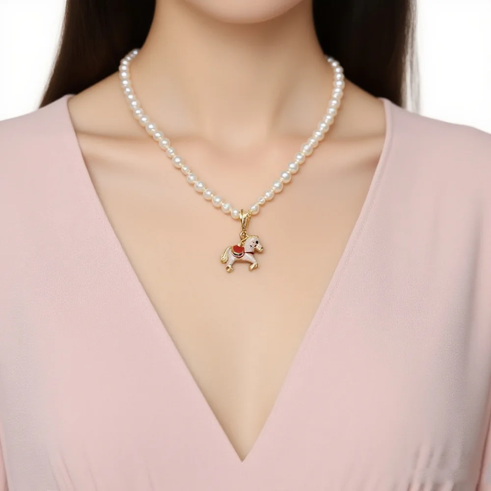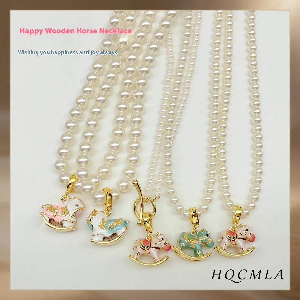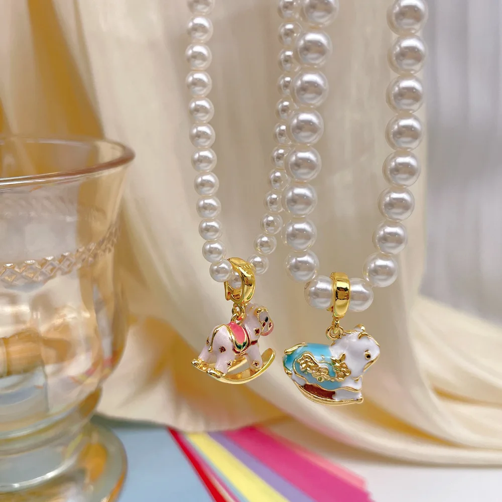 Цепочка с пони в конфетной цветовой гамме, сладкие жемчужные позолоченные подвески, модная трендовая ювелирная подвеска для девочек